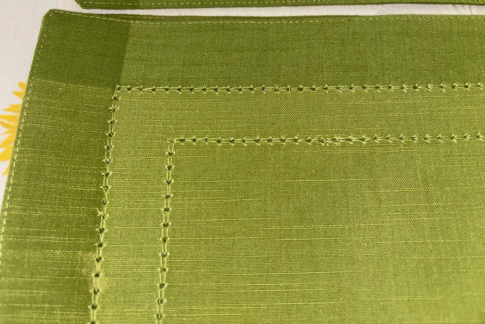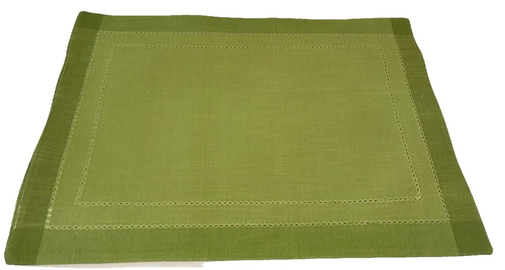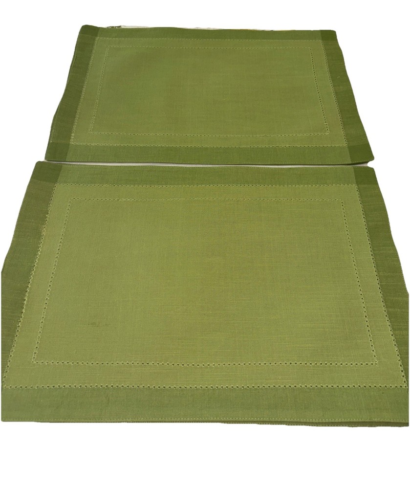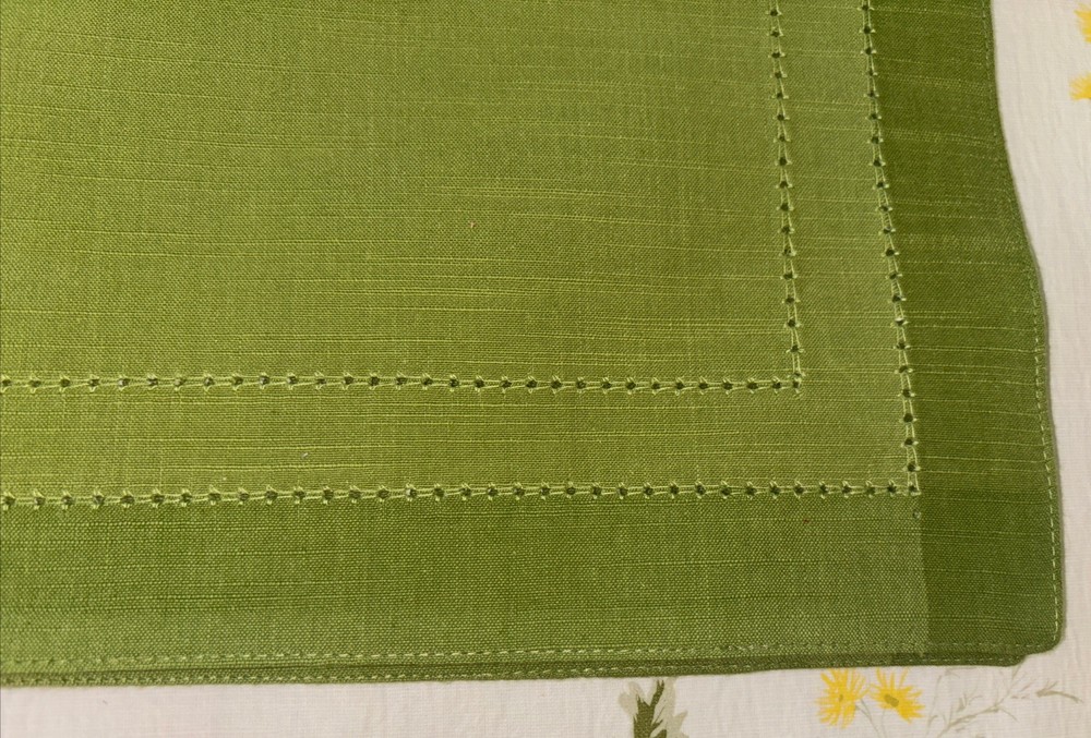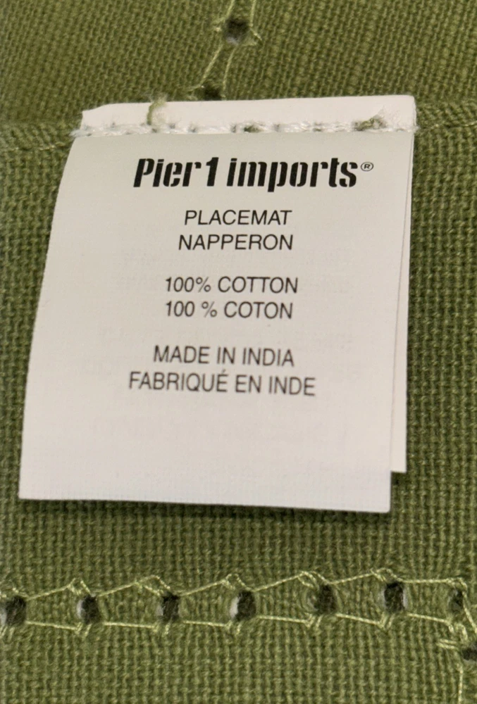 The Pier 1 Imports 6 Green Placemats are a set of elegant rectangular placemats made from 100% cotton. With a solid green color and a smooth design, these placemats are perfect for any occasion, making them versatile for everyday use. Machine washable and iron safe, these placemats are easy to care for and are sure to add a touch of sophistication to your dining table. Made in India, these placemats are 13.5” x 20” in size, making them the ideal addition to any home decor. Very elegant design 2 tone green darker in the outside I don’t feel like they have been used no stains still very crisp. Porches-2