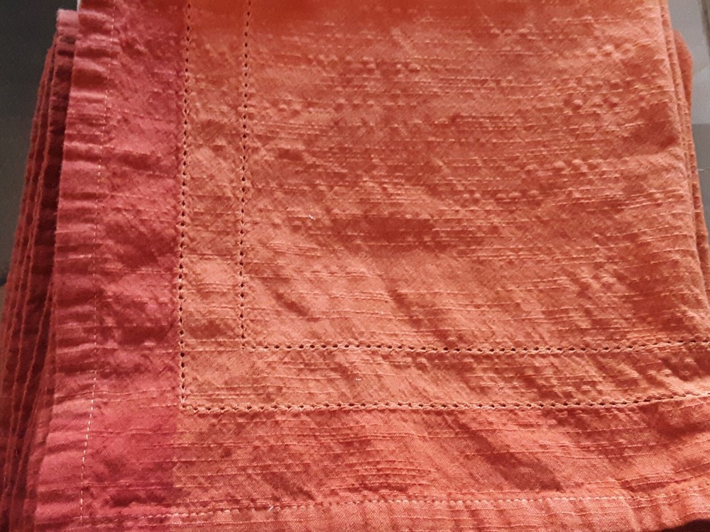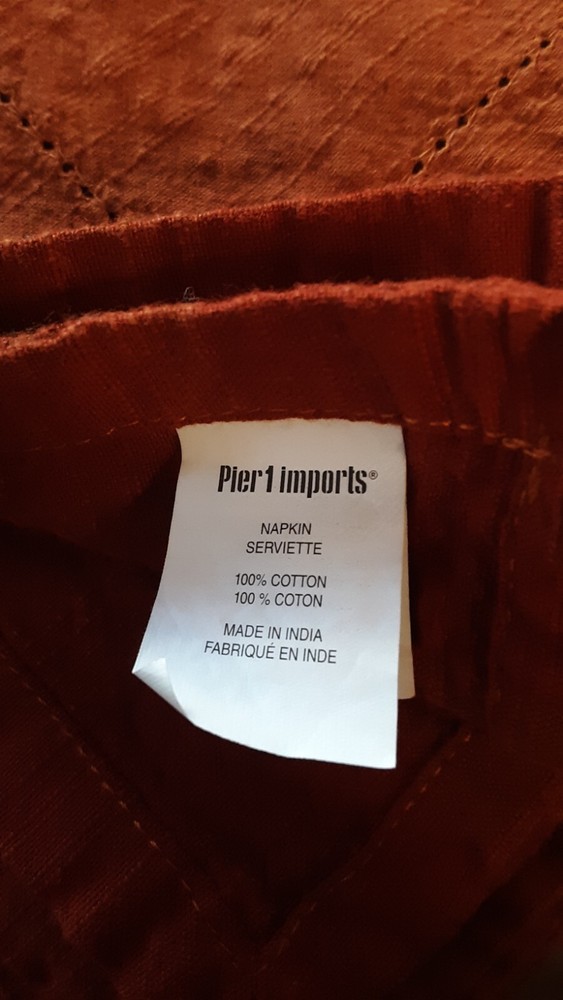 Pre-owned and used set of (8) Pier One cotton napkins made in India - orange ombre effect - have been laundered numerous times - each measures approx. 19.5" square - all labels but two are cut out. Pier One set of (6) coasters & holder w/tag. Pier One set of (2) napkin rings w/tags. Please email any questions and as always, thanks for looking!