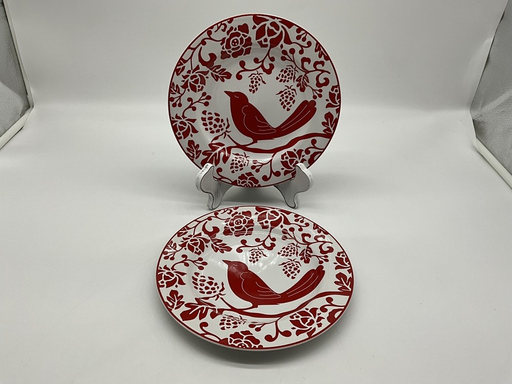 * Pier 1 Imports 8.25” Embossed Red Bird Plates * Salad/Dessert Plates * Set Of 2 * Round Ceramic plates * Normal wear should be expected * Please view all photos carefully for complete description * All items are sold AS IS and AS DESCRIBED * We ship next business day