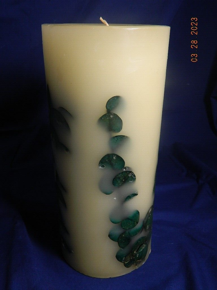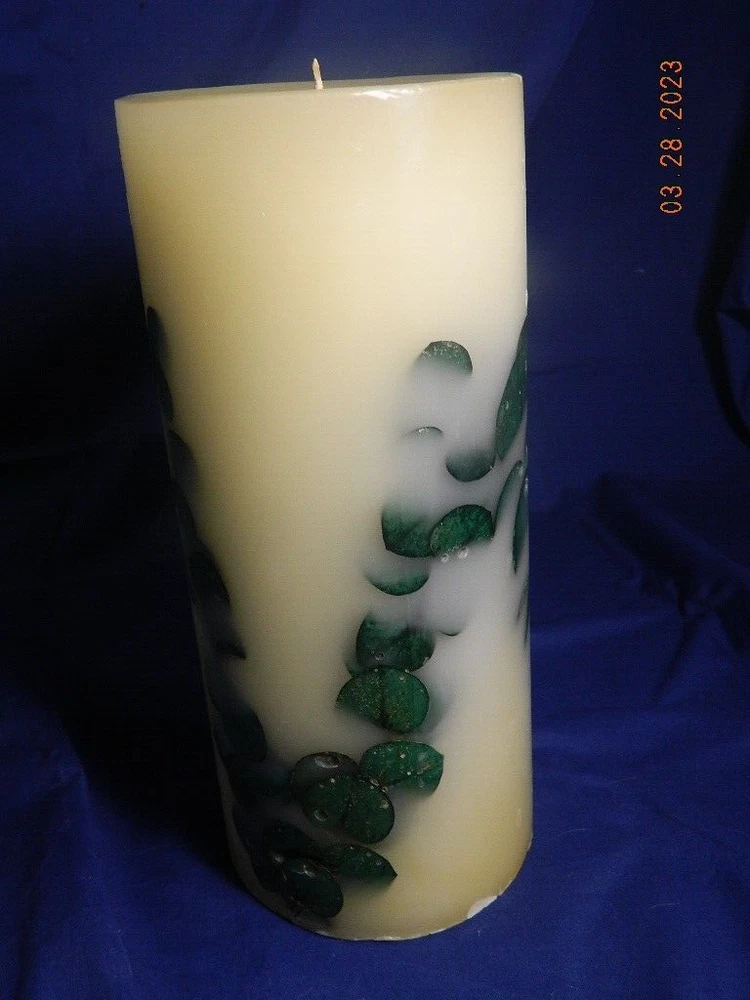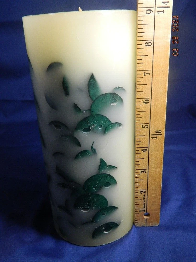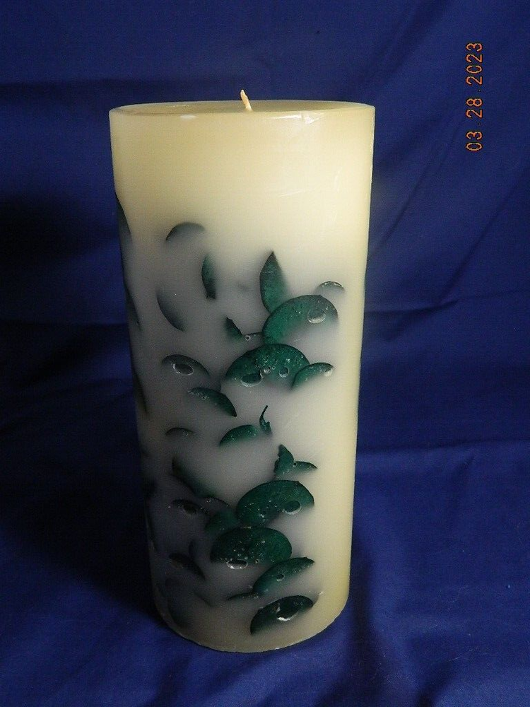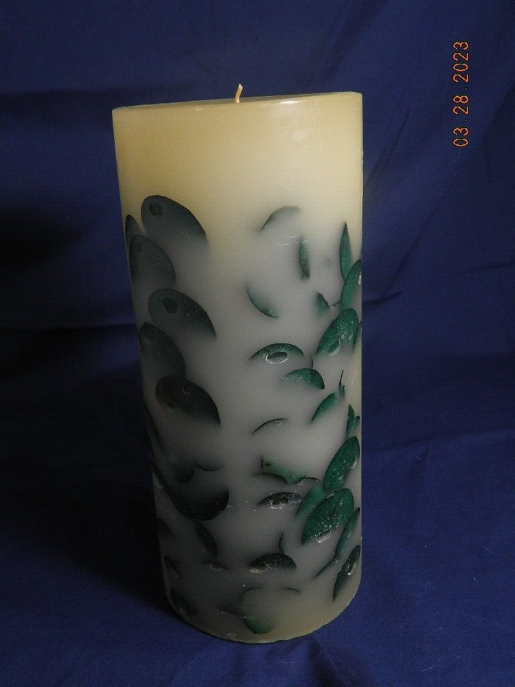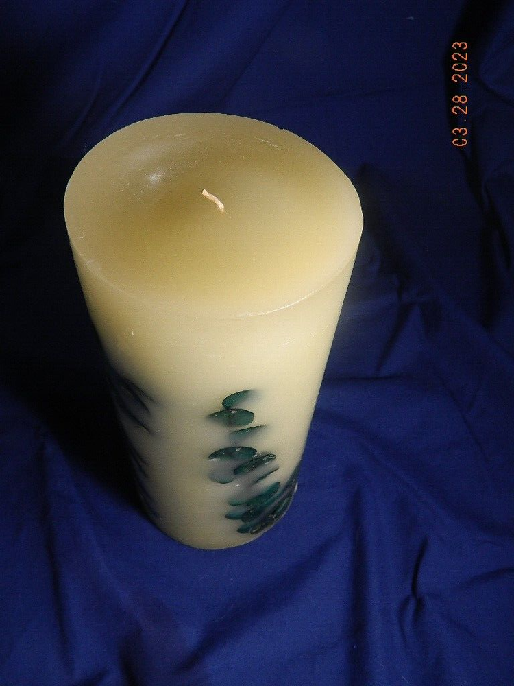 Pier 1 Imports Large Decorative Pillar Candle 9"X4" White Candle with Green Design Unscented...