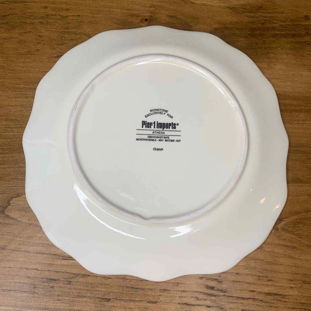 <![CDATA[<div>Plates are from the Pier 1 Athena Collection - RETIRED and HTF Plates can be used for appetizers, salads, or desserts. Each plate measures approximately 8-1/2" diameter x 1"High. Plates are dishwasher & microwave safe. Set of 3 plates in excellent condition