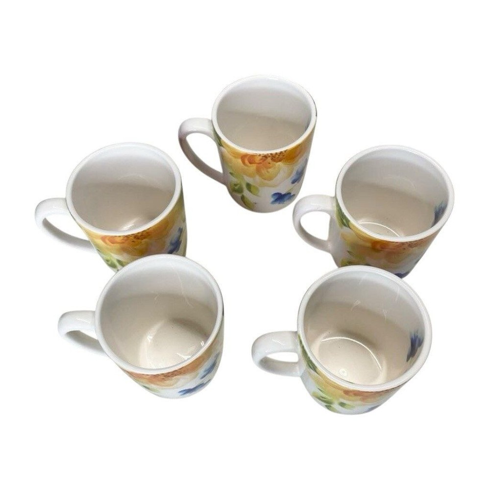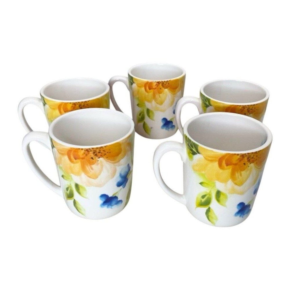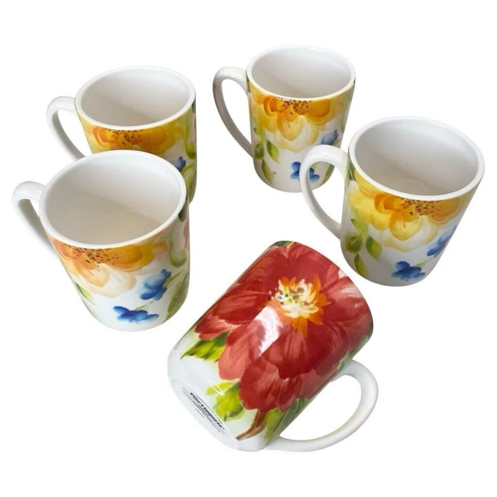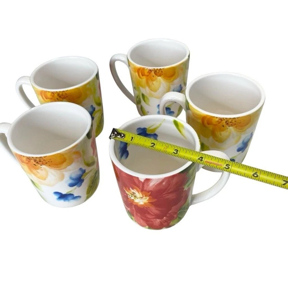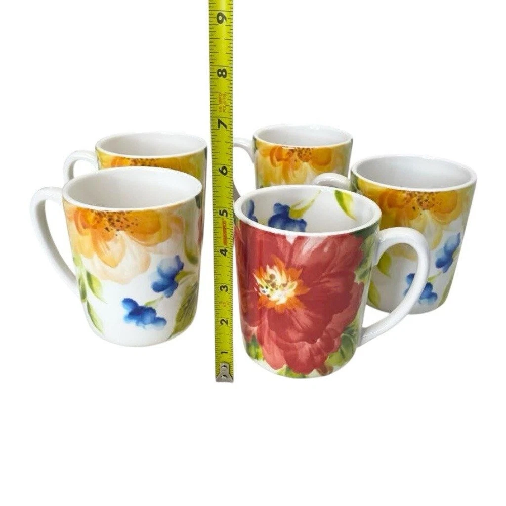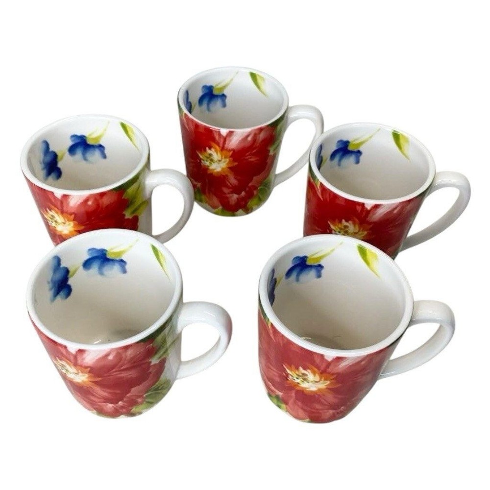 Brighten your kitchen or gift someone special with this Pier 1 Imports Amelia Floral Mug Set. This charming set includes five ironstone mugs, each adorned with bold red poppies and warm floral accents—perfect for coffee, tea, or hot cocoa. These mugs combine beauty with function and are crafted from durable ironstone to withstand daily use. Brand new and unused, this lovely set is ideal for spring or summer gatherings, a cottage-style kitchen, or as a thoughtful housewarming gift. Bring a touch of floral cheer to your table with these colorful and cozy cups from the trusted quality of Pier 1 Imports.