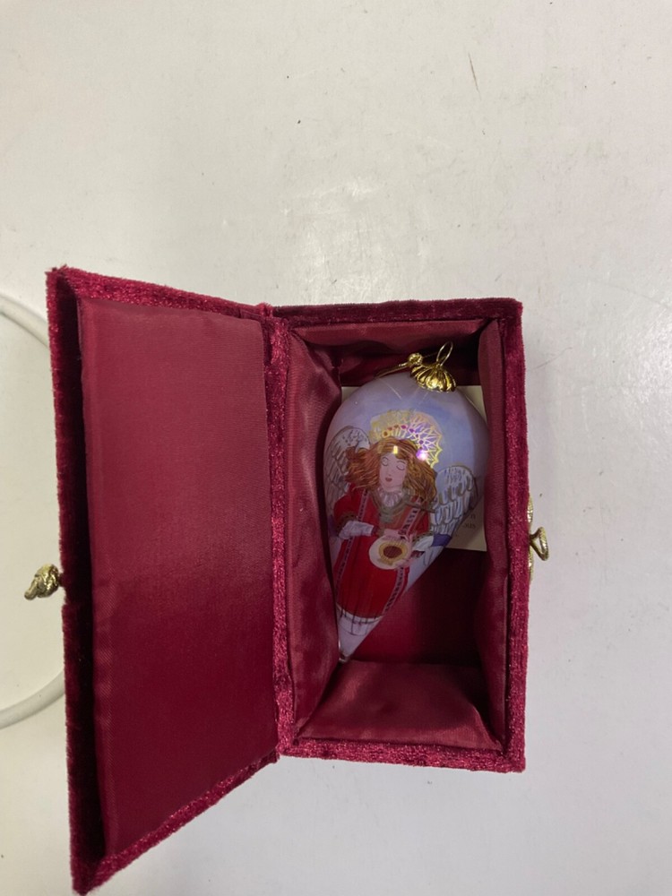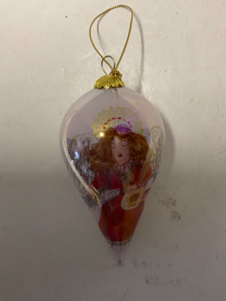 2003 Pier1 imports angle design glass teardrop red Christmas ornament by li bien with box. Condition is used but in great shape with no chips or cracks.Buyer receives ornament in photos.Please see photos.shipped with usps. T2