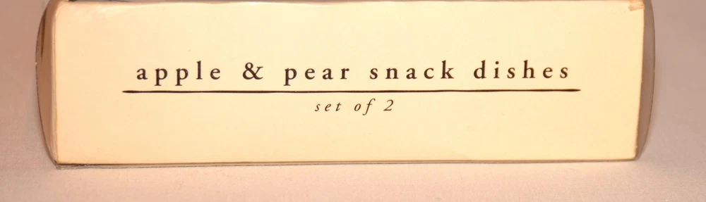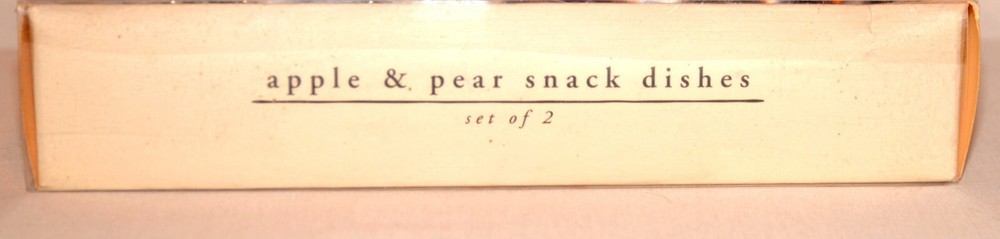 Pier 1 Imports - Apple & Pear Snack Dishes – Aluminum/Silver Finish - New Up for sale is this Pier 1 Imports - Apple & Pear Snack Dishes – Aluminum/Silver Finish - New . These items are new and still in their factory packaging. Please look carefully at the pictures for more details because they show the actual item you will receive, nothing else is included unless noted . This item comes from a clean, smoke free and pet free environment. Thank you for looking and please check out my other items for sale. Payment Methods: * We Accept PayPal payments. Shipping: * We ship within 3 business days after payment. This is the actual Pier 1 Imports - Apple & Pear Snack Dishes – Aluminum/Silver Finish - New you will receive. Your feedback is very important to us. We will leave positive feedback for you when you purchase an item. In return once you have received your purchase, please leave us feedback in return. Thank you very much.