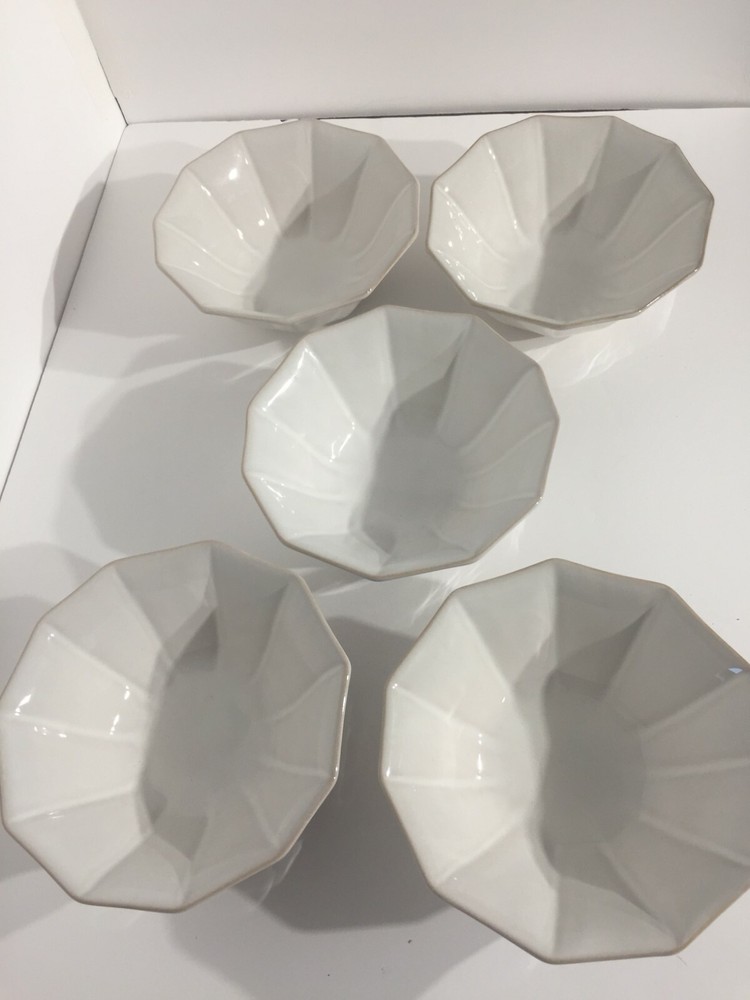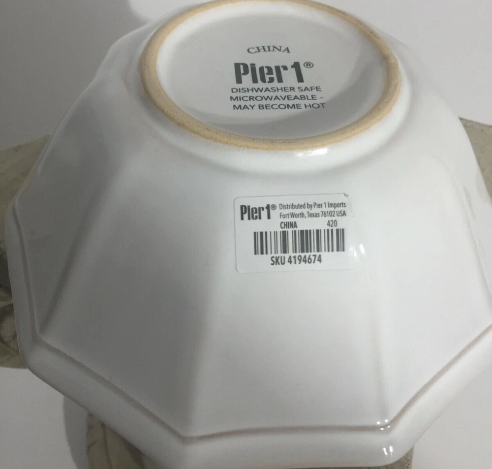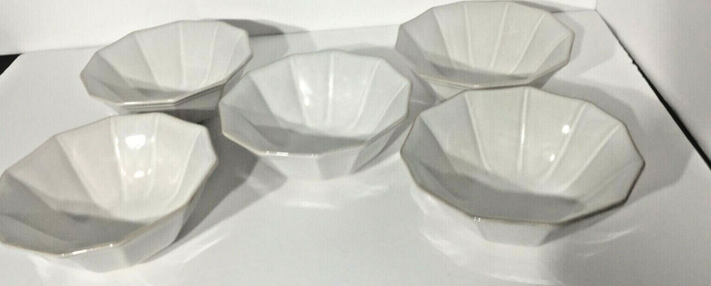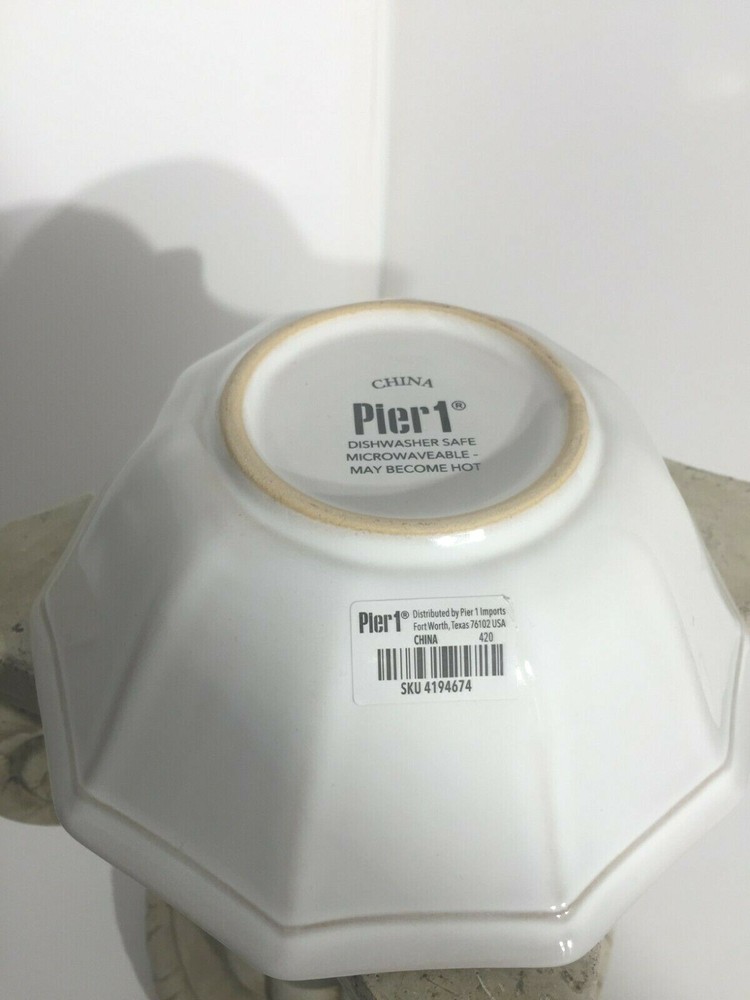 Pier 1 Imports Augie Scalloped Terracotta Pottery White Dinner Bowl Set of 5 NWT Brand: Pier 1 Imports Augie Scalloped Terracotta Pottery White Dinner Bowl Set of 5 NWT Can be used for cereal, ice cream, fruit, salad, main & soup bowl. 7" Diameter, 3" at Bottom. 2 3/4" High. A personalized place setting is always in style. Our hand-painted Augie Dinnerware is thoughtfully crafted with a petaled edge, subtle texture and versatile white hue that’s perfect for mixing and matching with both prints and solids. Dishwasher Safe. Microwaveable - May Become Hot. Made In China. Please review all pictures as condition is subjective. Do you believe price is a little high, no problem, the "Best Offer" option is activated. I am open to any reasonable offers. We always mail with tracking information. Buyer Pays Return Shipping If Need Be. Please closely examine the listing and let me know if you have any questions, I'm happy to help! I ship same day Pay Pal says I've been paid. Pictures may not reflect true colors due to various lighting conditions. Smoke free and pet free environment. SHIP in U.S. ONLY. https://www.ebay.com/str/despinasdailydeals … check out my other listings. Thank you for stopping by my store and I hope you will visit again soon.