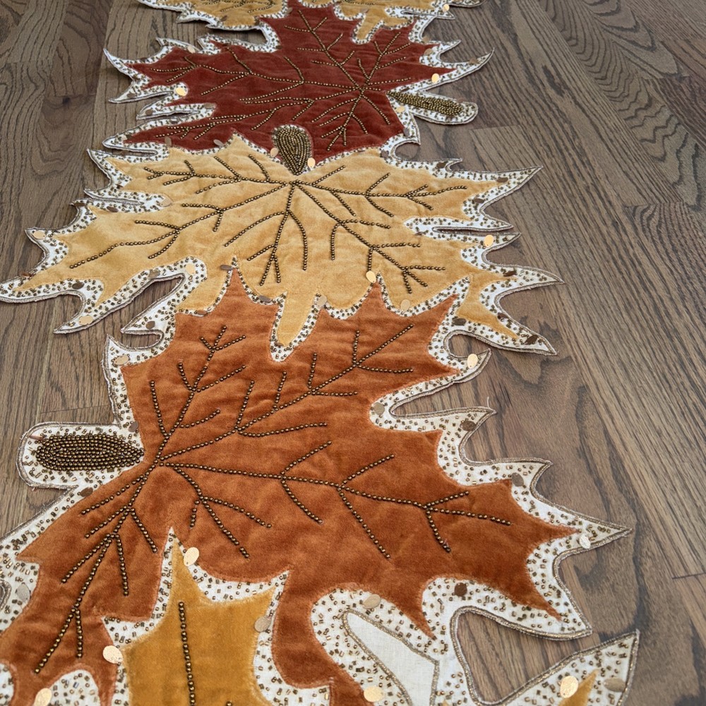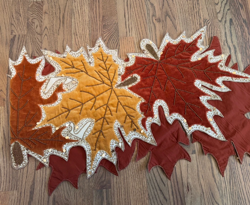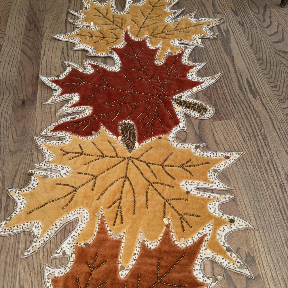 Absolutely love this elegant table runner! The intricate beaded embroidery and fall leaf design add a cozy, upscale touch to my dining table. The cotton-polyester blend feels durable yet soft, and the colors are even richer in person—perfect for autumn gatherings. Plus, it arrived in flawless condition, just as described. A stunning piece for seasonal décor!