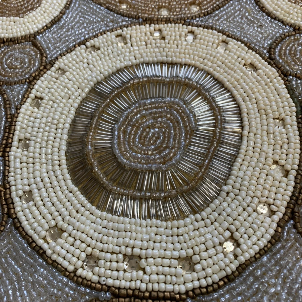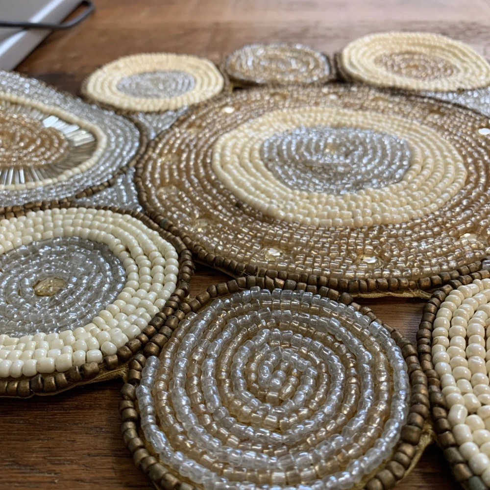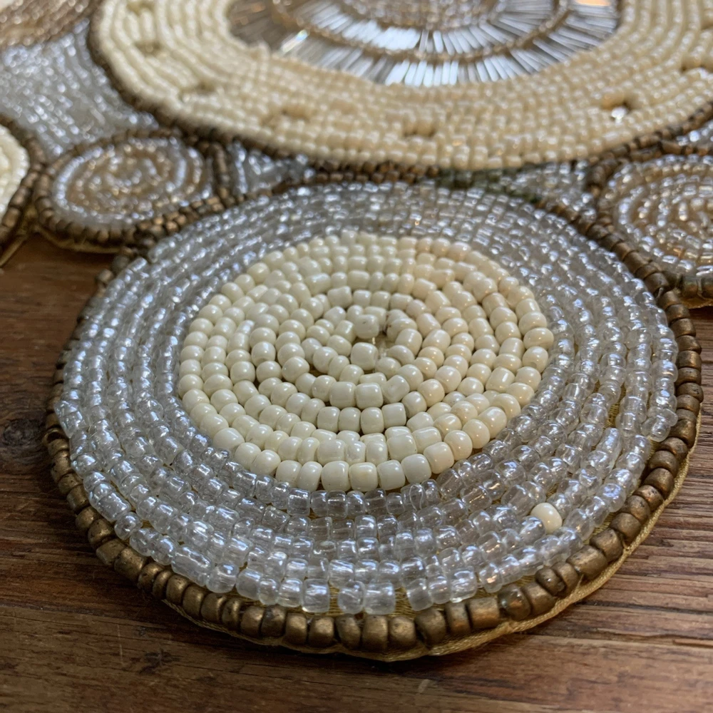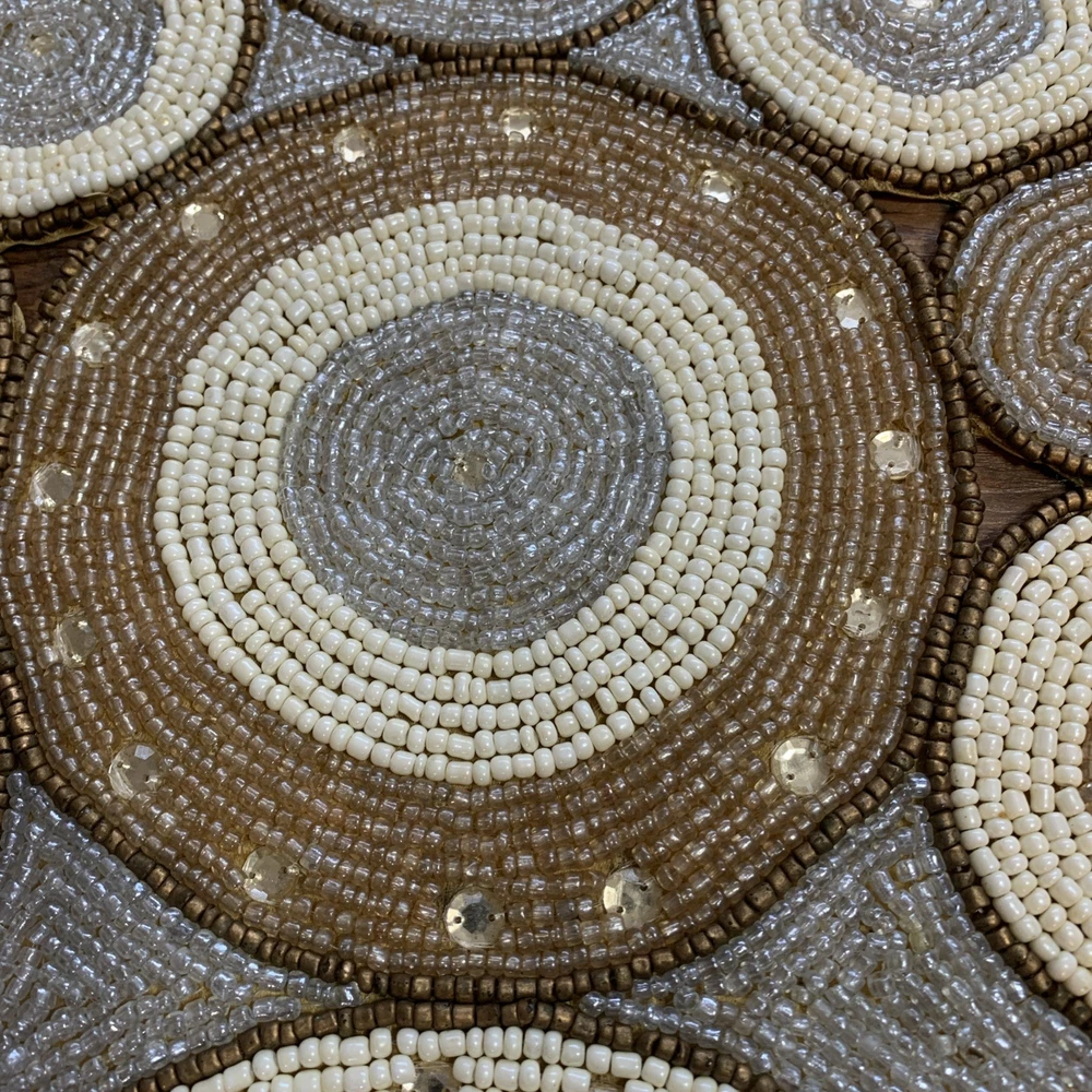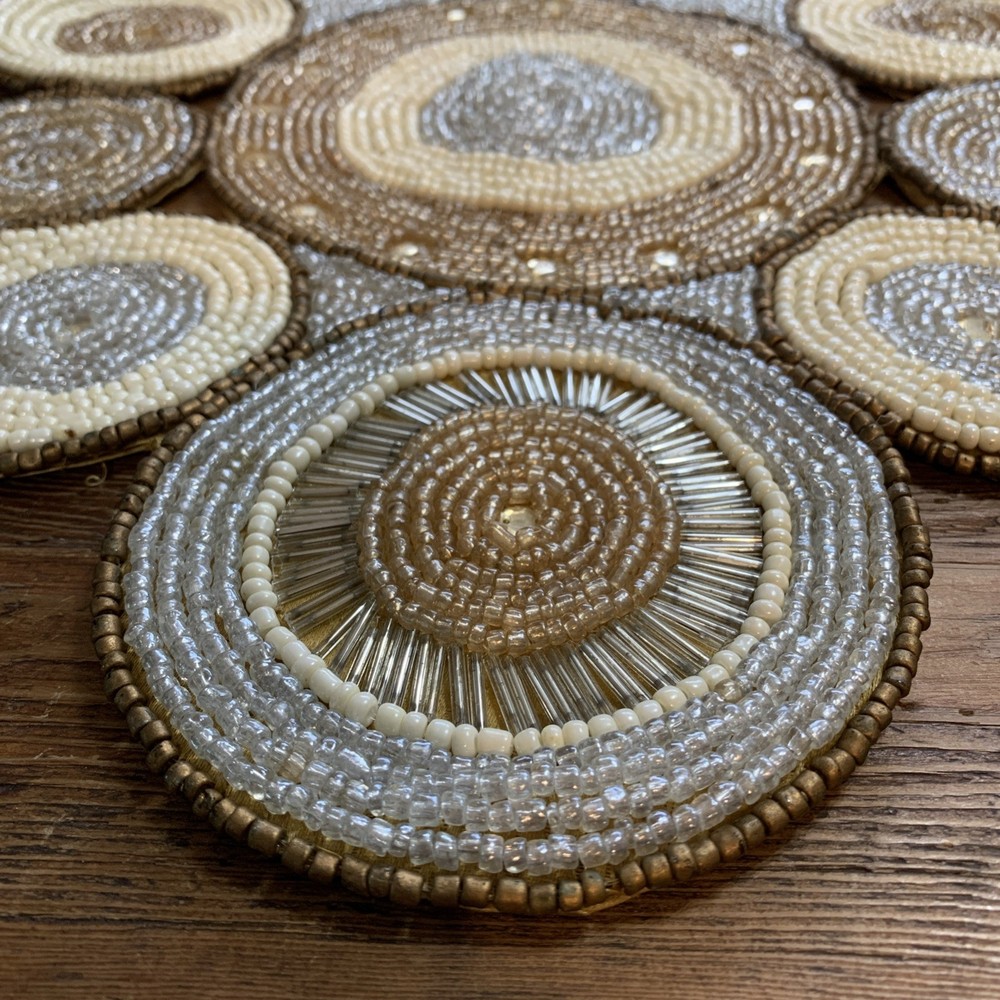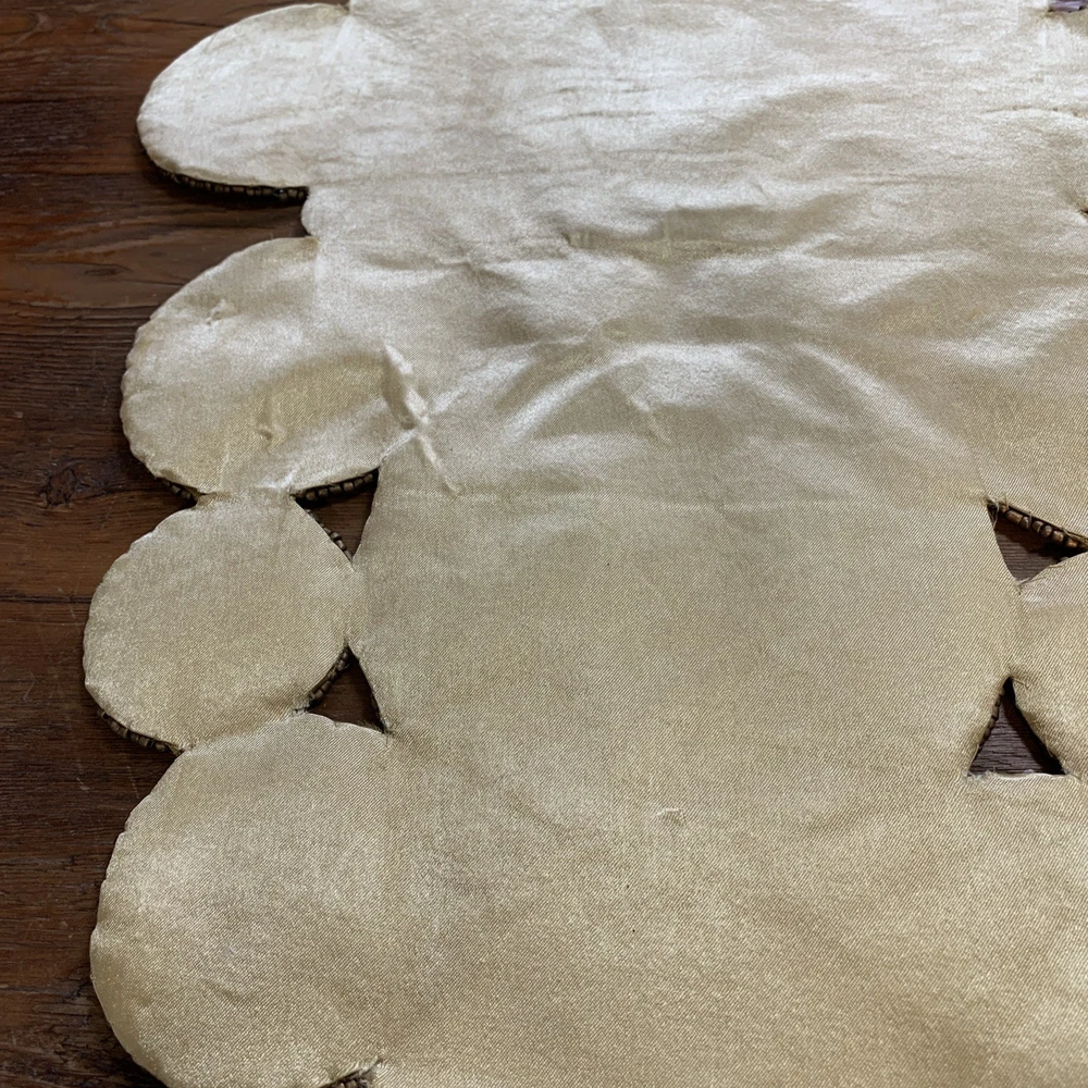 Add a touch of elegance to your holiday table settings with this exquisite Pier 1 Imports Beaded Table Runner. Its stunning geometric pattern and oblong shape are perfectly suited for a variety of occasions, whether you're celebrating Christmas, fall, or hosting a special event. The intricate beading provides a luxurious texture that enhances the runner's classic style. Crafted from high-quality 100% polyester, this table runner measures less than 40 inches in length and ranges from 10 to 15 inches in width, making it a versatile choice for your dining or living space. The rich gold color complements a multitude of décor themes and adds a sophisticated finish to any table arrangement. Proudly made in India, this piece is a timeless addition to your home.