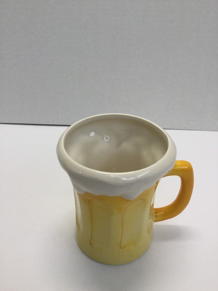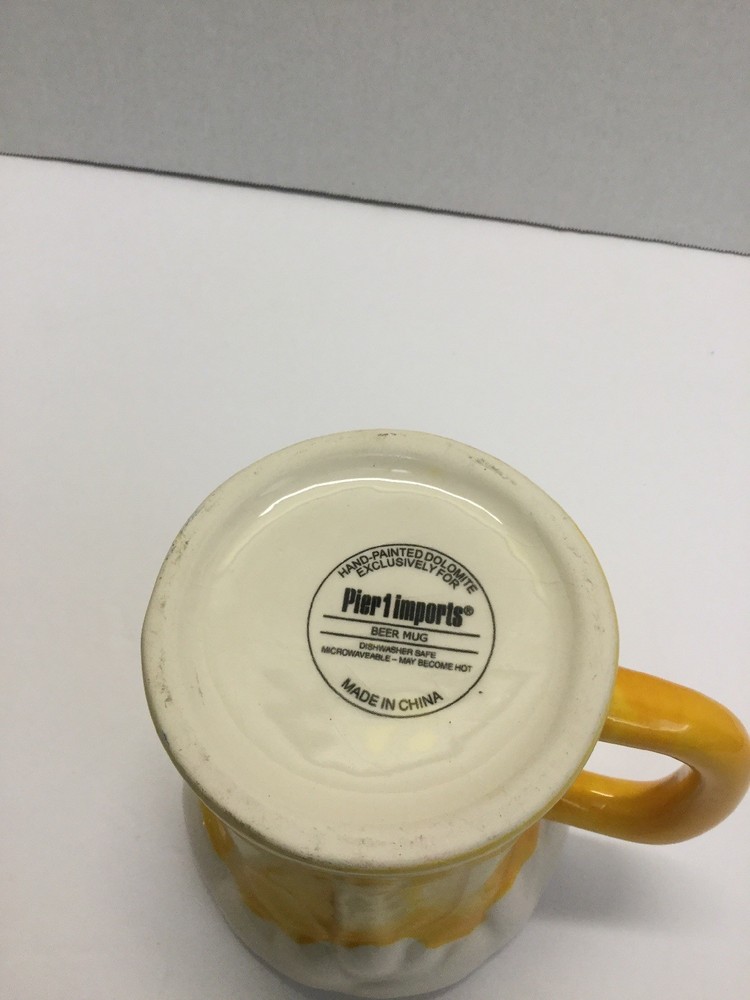 Pier 1 Imports Beer Mug Design with 3D frothy foam Mug Cup Yellow/White Porcelain 4-3/4" tall...