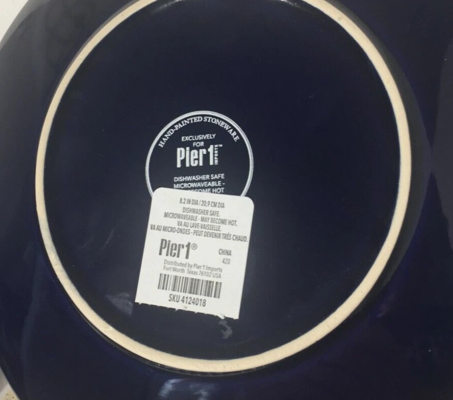 Pier 1 Imports Blue Hand Painted Salad Plate Ceramic 4124018 Set 7 NWT Brand: Pier1 Imports For sale as a set of 5. Blue Hand Painted Salad Plate. Blue/white. Size: 8.27" Diameter x 0.87" Height. Stoneware. Dishwasher-Safe. Microwaveable - May Become Hot. Imported. Made In China. Please review all pictures as condition is subjective. Do you believe price is a little high, no problem, the "Best Offer" option is activated. I am open to any reasonable offers. We always mail with tracking information. Buyer Pays Return Shipping If Need Be. Please closely examine the listing and let me know if you have any questions, I'm happy to help! I ship same day Pay Pal says I've been paid. Pictures may not reflect true colors due to various lighting conditions. Smoke free and pet free environment. SHIP in U.S. ONLY. https://www.ebay.com/str/despinasdailydeals … check out my other listings. Thank you for stopping by my store and I hope you will visit again soon.