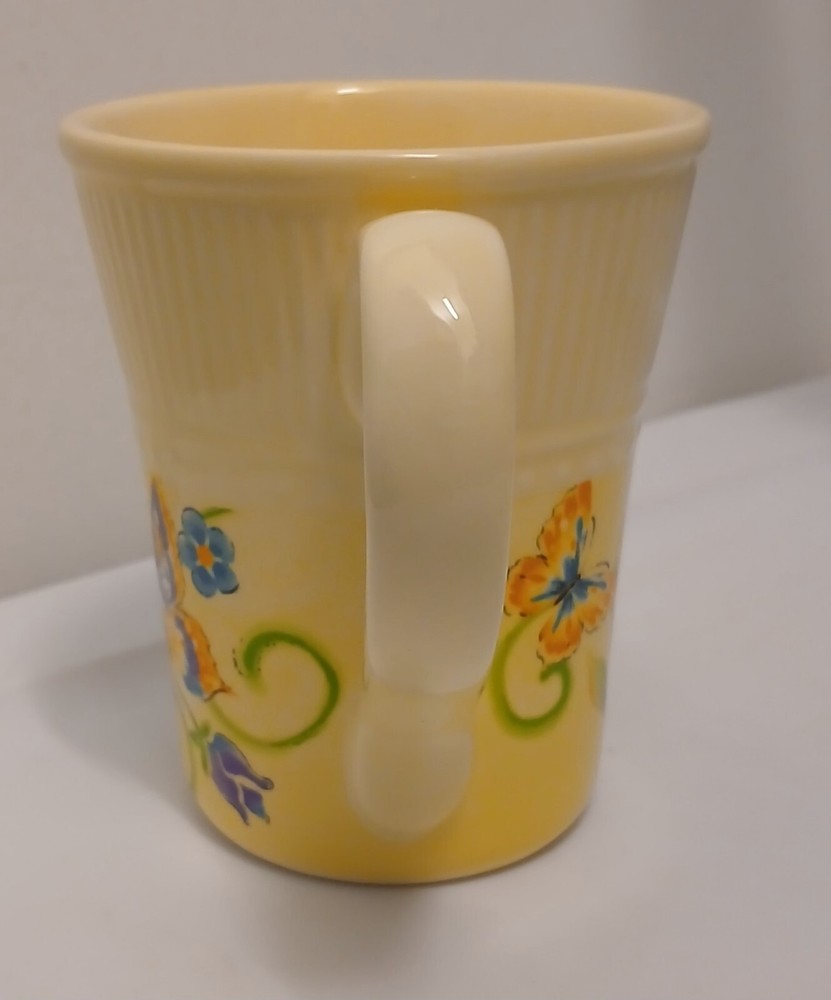 Pier 1 Imports presents a Botanica Butterfly and floral Design Coffee Mug in pale yellow color. Holds 14oz .