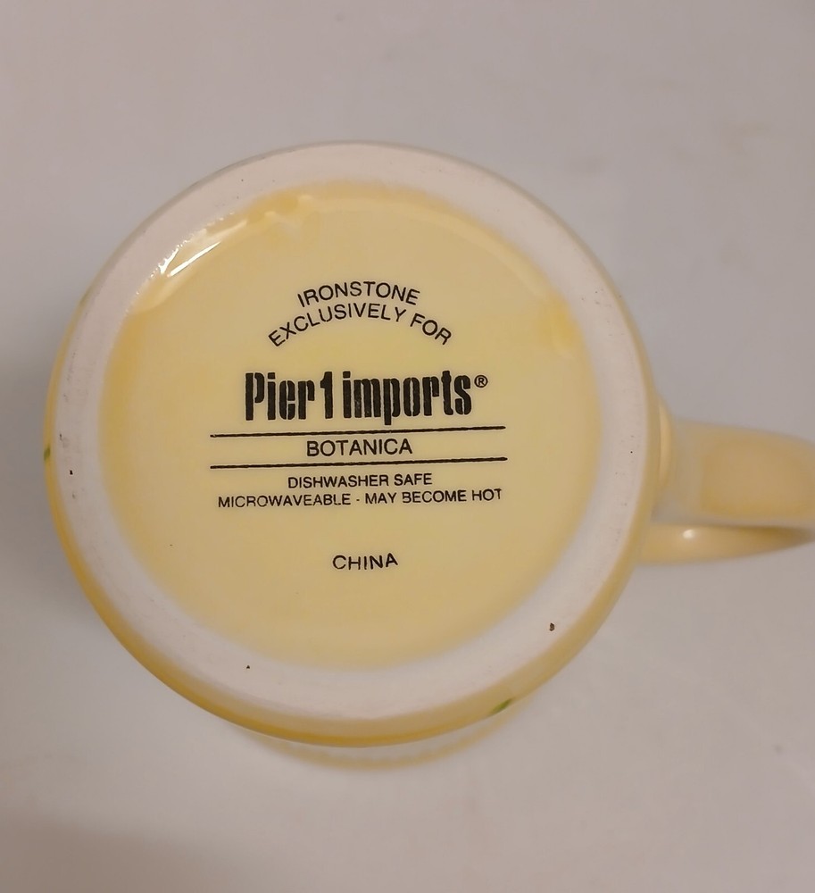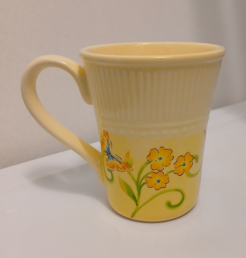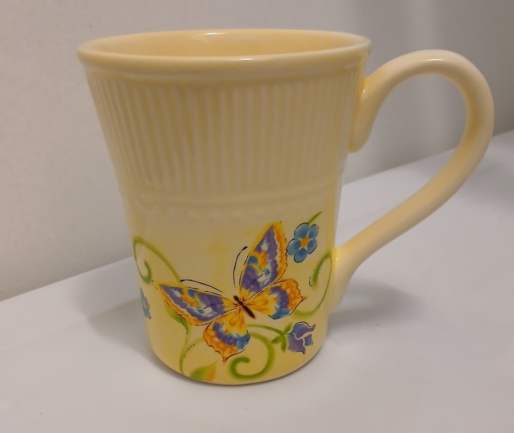 Pier 1 Imports presents a Botanica Butterfly and floral Design Coffee Mug in pale yellow color. Holds 14oz ....