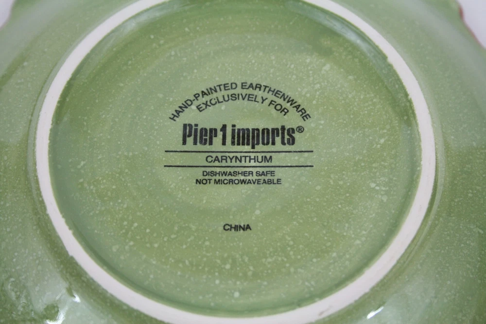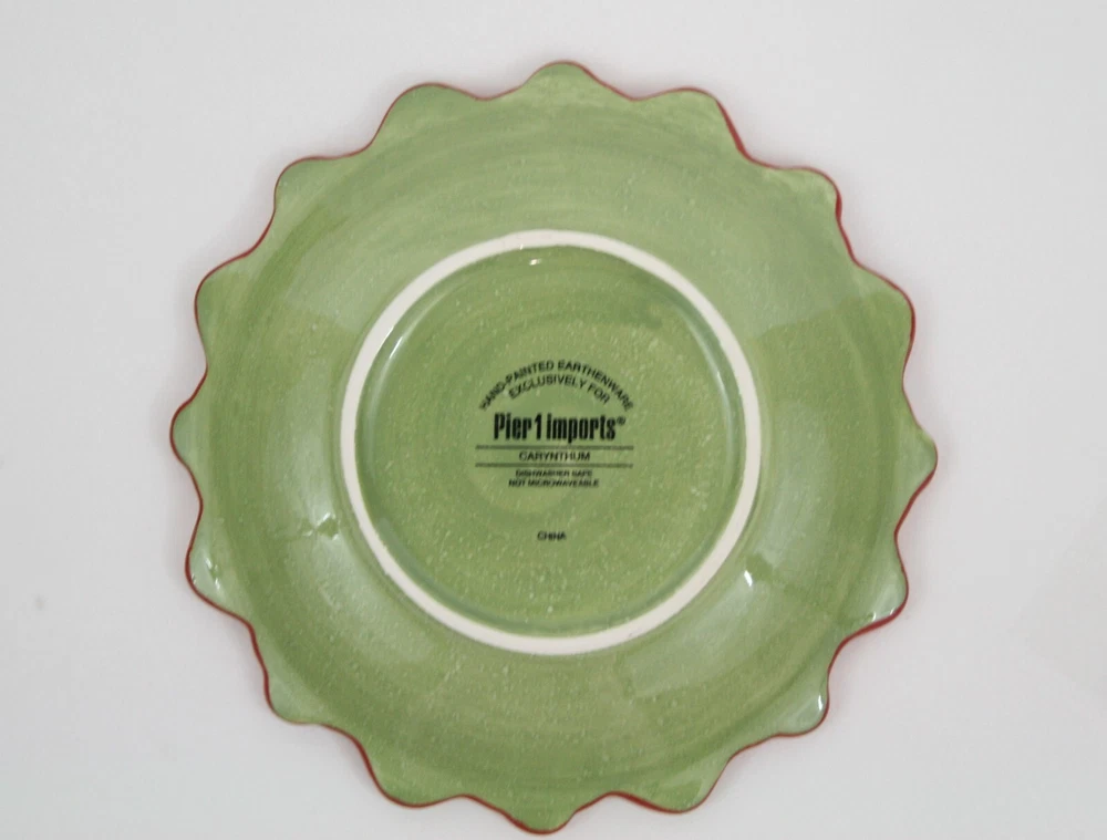 Pattern: Carynthum Pier 1 Imports stoneware dessert/salad plate Approximate dimensions: 8"D x 1.5"H Preowned--excellent, like new condition--no flaws observed International Buyers – Please Note: Import duties, taxes, and charges are not included in the item price or shipping cost. These charges are the buyer's responsibility. Please check with your country's customs office to determine what these additional costs will be prior to bidding or buying. Most international shipments arrive within 5-10 business days. Others take up to 30 days or more. Usually, a delay is caused when the package is held up in customs in your country.