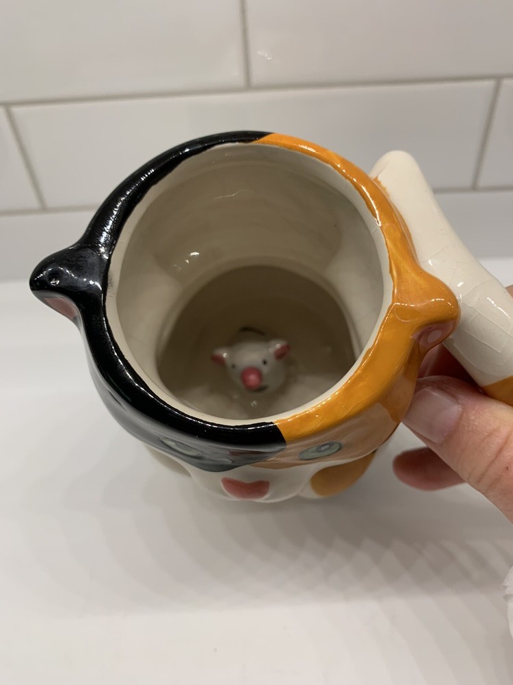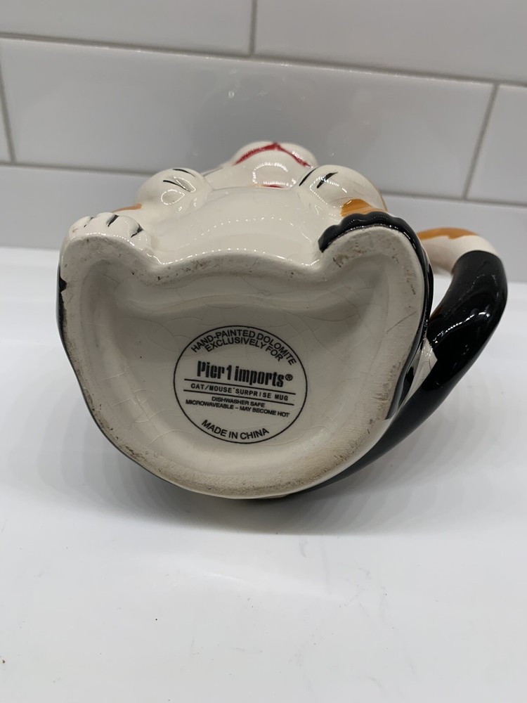 Pier 1 Imports Calico Cat Coffee Mug Tea Cup with Surprise Mouse Inside in excellent condition. No chips or cracks. Some normal crazing. From smoke free pet free clean home. Buyer to pay shipping from 14534 I strive to have my customers 100% happy. If whatever reason you are not pleased let me know and I will make it right