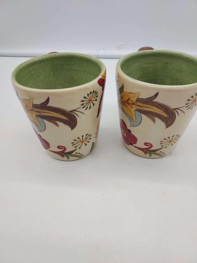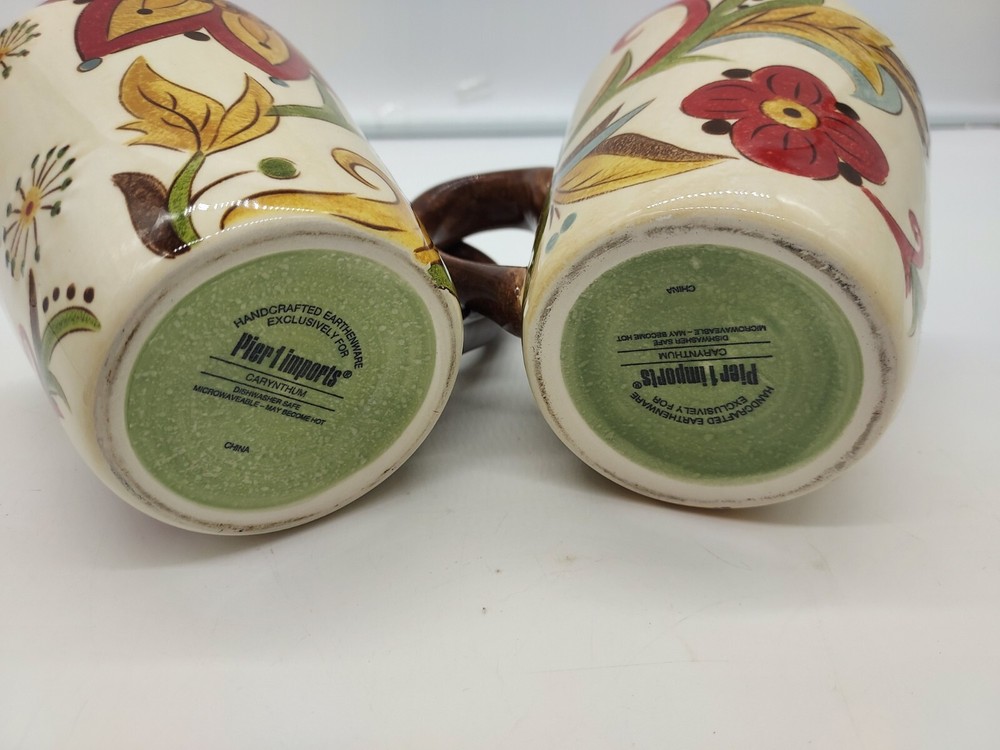 Pier 1 Imports Carynthum Earthenware Coffee Mugs Cups Floral Design Set Of Two . Condition is Used. Shipped with USPS Priority Mail....