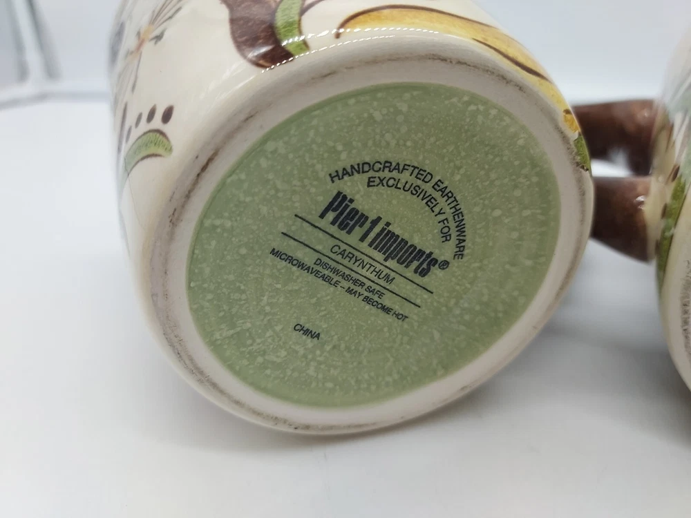 Pier 1 Imports Carynthum Earthenware Coffee Mugs Cups Floral Design Set Of Two . Condition is Used. Shipped with USPS Priority Mail.