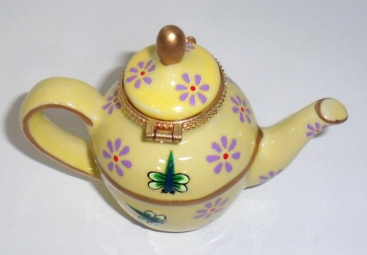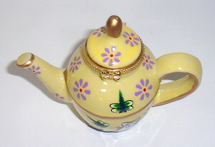 Pier 1 Imports Cats & Dragonflies Teapot Trinket Box Yellow Blue Green Gold, New! Never used. Perfect in every way....