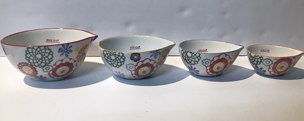 Pier 1 Imports Ceramic Measuring Cups. Nesting Ceramic Measuring Cups Set of 4 Pier 1 Imports beautiful Pattern. Wonderful Condition No Chips No Cracks