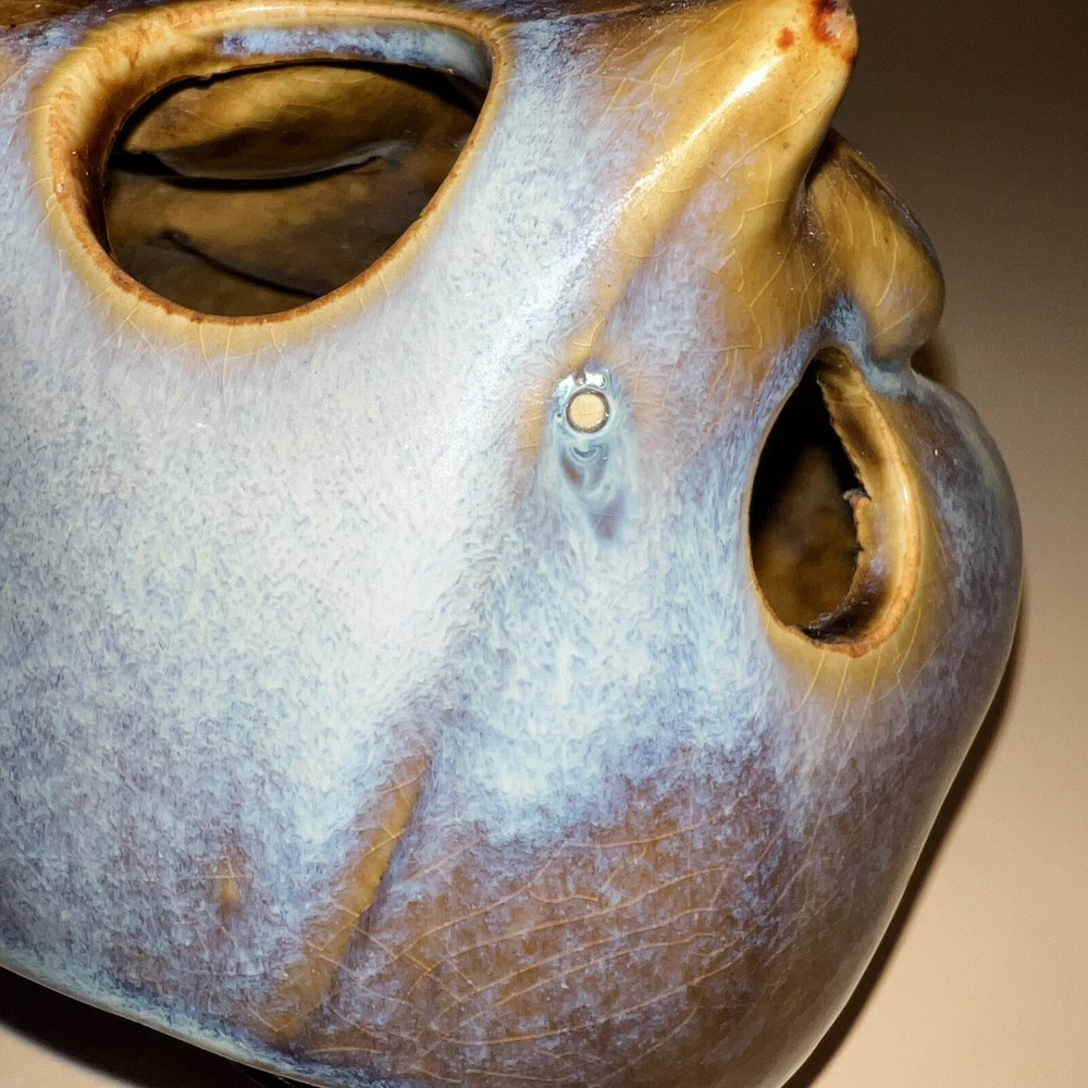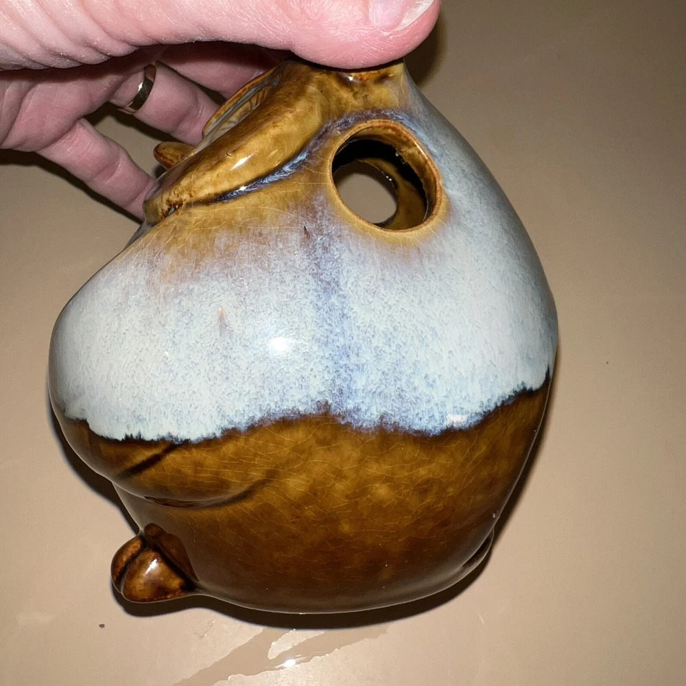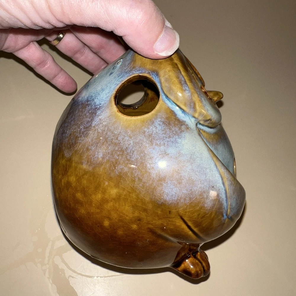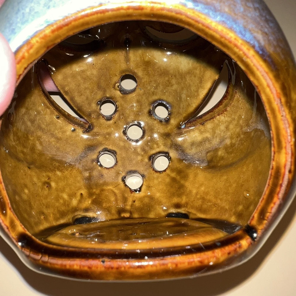 This Pier 1 Imports ceramic owl candle holder is the perfect addition to any room. With its rustic, bohemian style, it is suitable for all occasions and suitable for holding mini candles or being placed on window sills or furniture. The blue pottery and high gloss finish give it a unique, glazed look that adds a 3D effect. Its size is medium, measuring 5 inches in height, and it is made of high-quality ceramic. This candle holder is perfect for those who love animals and dinosaurs, fantasy and periods/styles, and wildlife. It features a beautiful, mystical owl design that is perfect for adding a touch of magic to any space. All Pier 1 items are discontinued - if you are an owl collector, pottery lover or cottagecore, boho style fan, then you will adore this owl in your home. Small glaze inclusion on back of owl, behind ear. Clearly photographed.