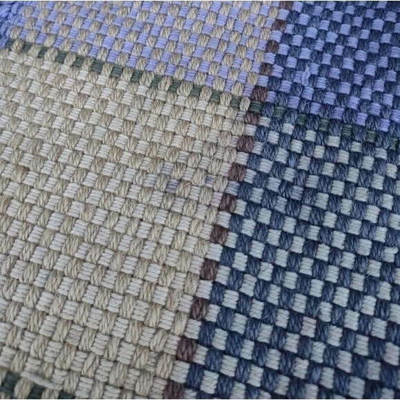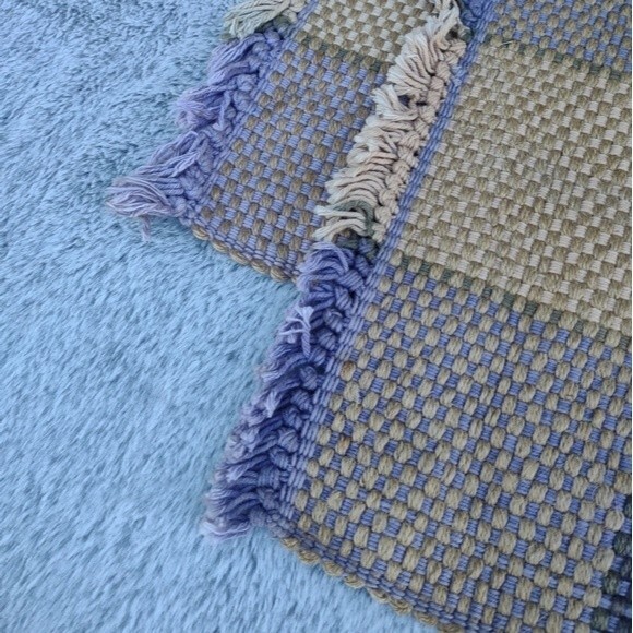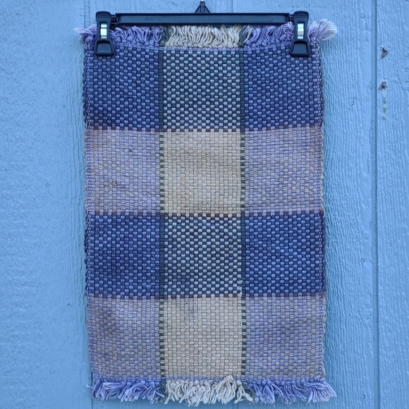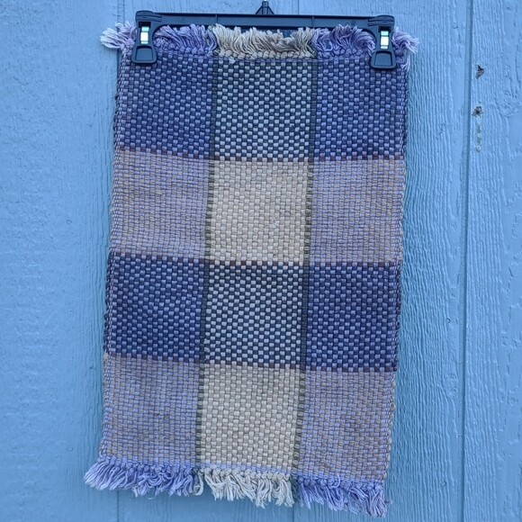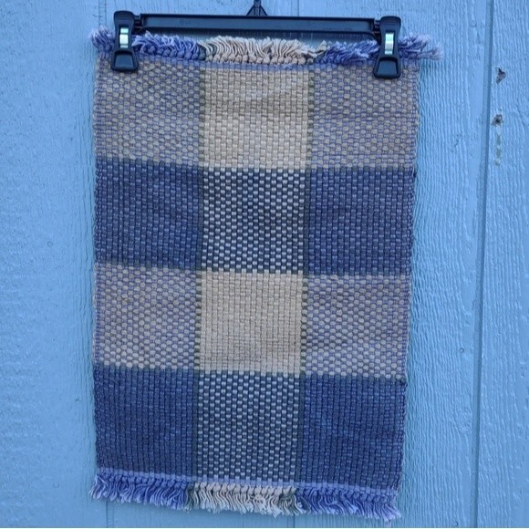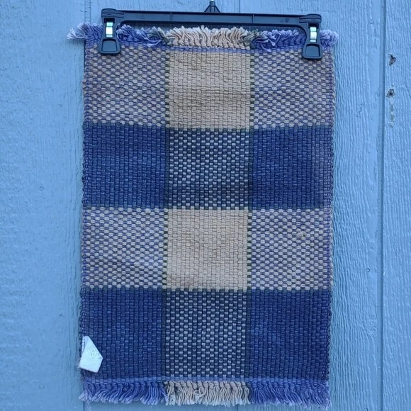In good pre-owned condition Writing on tag is worn Discoloration on one side See all pictures for details 85% Jute - 15% Cotton Color: Tan & Purple This listing includes 2 matching placemats Thick woven fabric Large gingham pattern Measures approximately: 13¼ in W x 20 in L