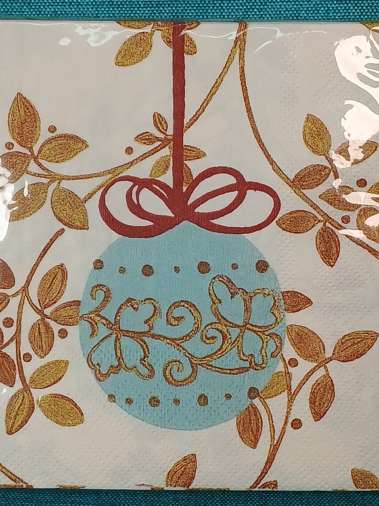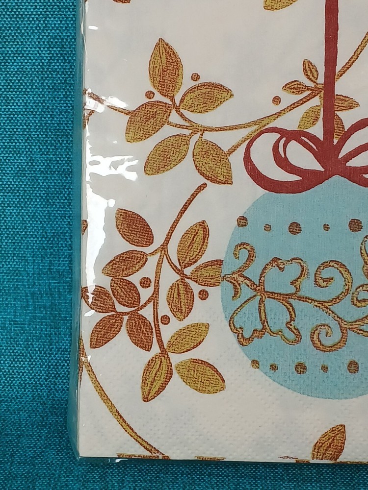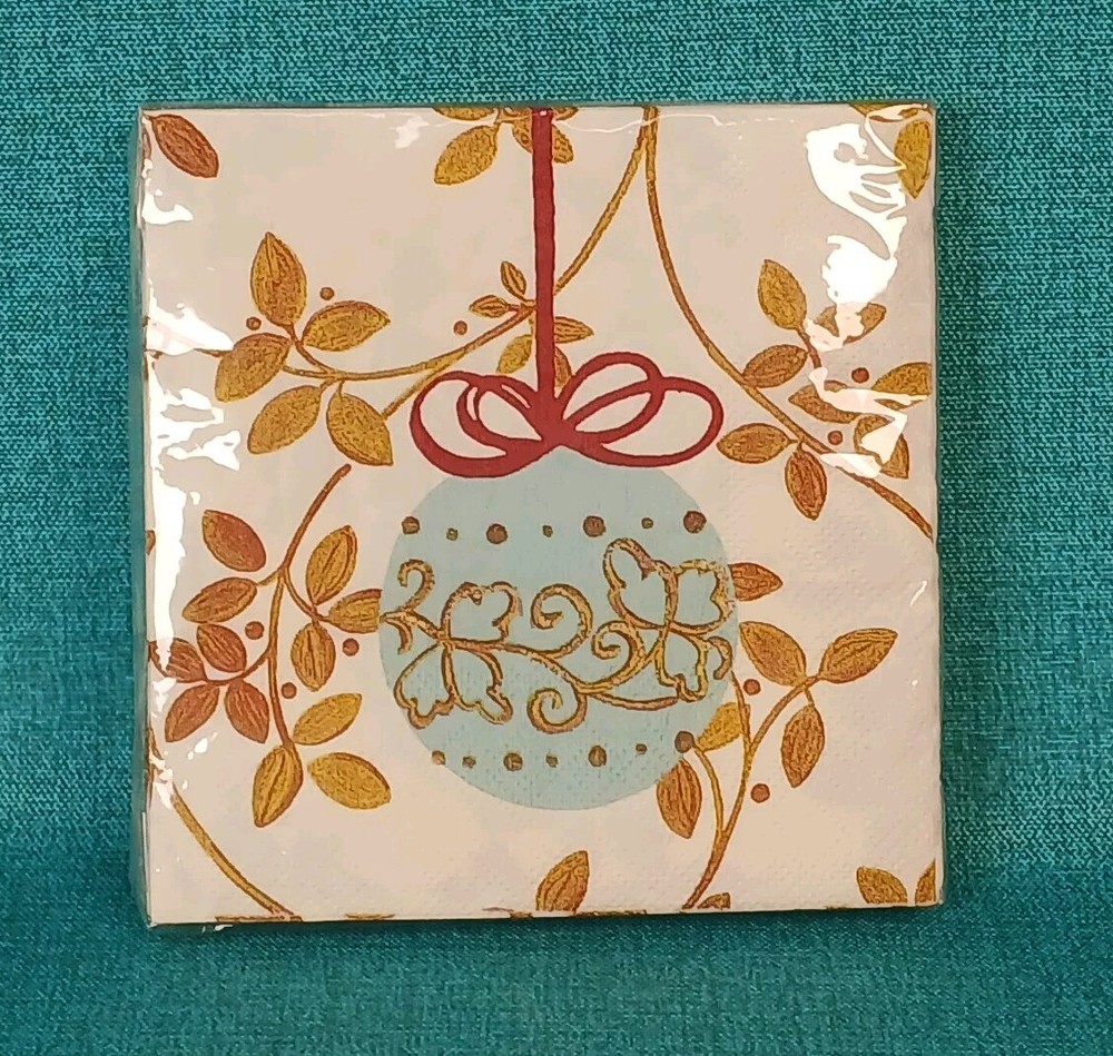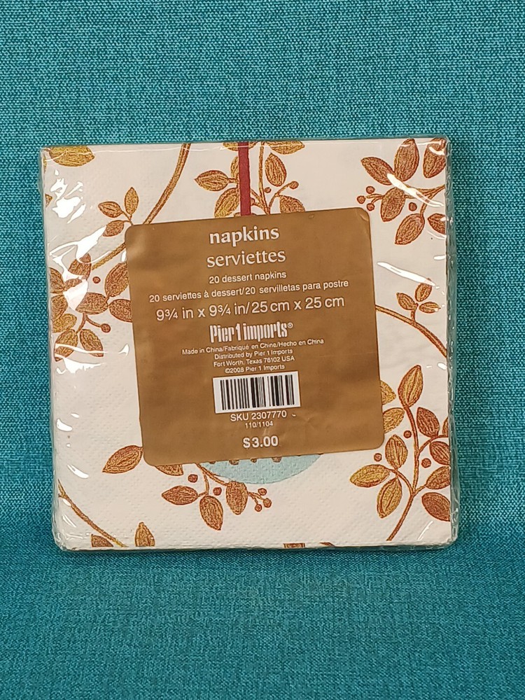Add festive cheer to your dining table with these Pier 1 Imports Christmas Dessert Napkins. The napkins feature a delightful holiday pattern with a cream, blue, and gold color scheme that's perfect for any Christmas meal. Made from high-quality paper material, these 20 square napkins are durable and long-lasting. Use them to wipe up sweet desserts or as a decorative touch to enhance your table setting. Get ready to impress your guests this holiday season with these stylish and functional napkins. Thank you for visiting our store.
