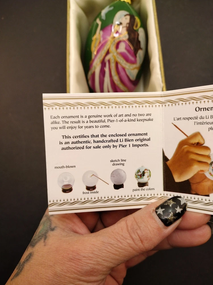 Pier 1 imports 2014 inside painted by Li Bein, Angel of Peace, Stunning. We try to source items that are in great shape , unless other wise noted above. This item will be in good used condition with no major defects. All used items will show wear , expect minor marks / wear to fabric and friction surfaces. All Textiles will have odors from previous Owners,Storage and Thrift Stores Etc. Thank you for considering our items