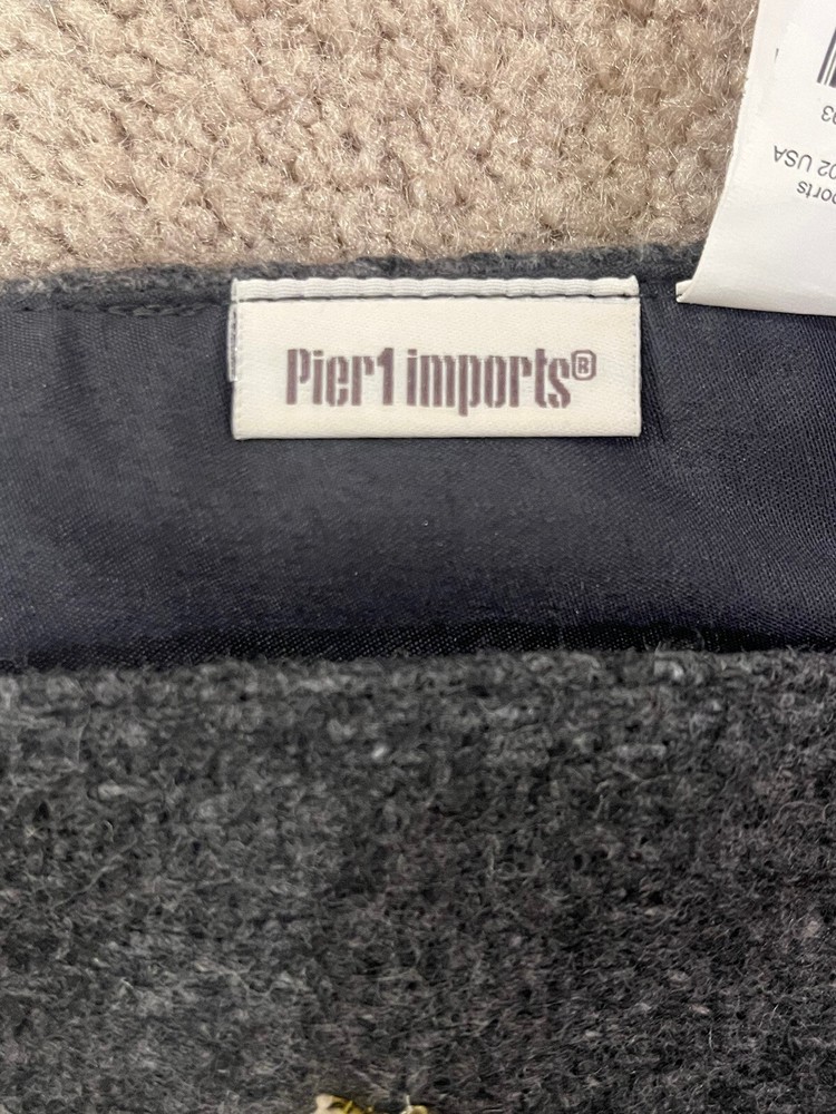 Add a touch of winter wonderland to your dining table with this beautiful Pier 1 Imports table runner. Featuring a charming Christmas pine tree pattern in gray and cream, this 72-inch long and 14-inch wide rectangle runner is perfect for the holiday season or any other occasion. Made of a blend of nylon, polyester, wool, and acrylic, this table runner is easy to care for with spot cleaning instructions. Good Condition Please see Photos Thank you for Looking Smoke Free