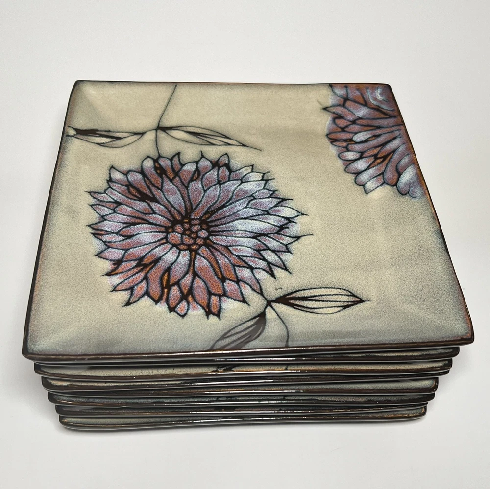 This listing is for one (1) Pier 1 Imports Chrysanthemum Salad Plate (approx. 8.5”). Each photo in the listing is of a different plate in our collection. They all have the same design but slightly different appearances. These are used but in excellent condition. We inspected each plate and found no cracks or chips. Order more; save more! This item is discontinued so get it while you can!
