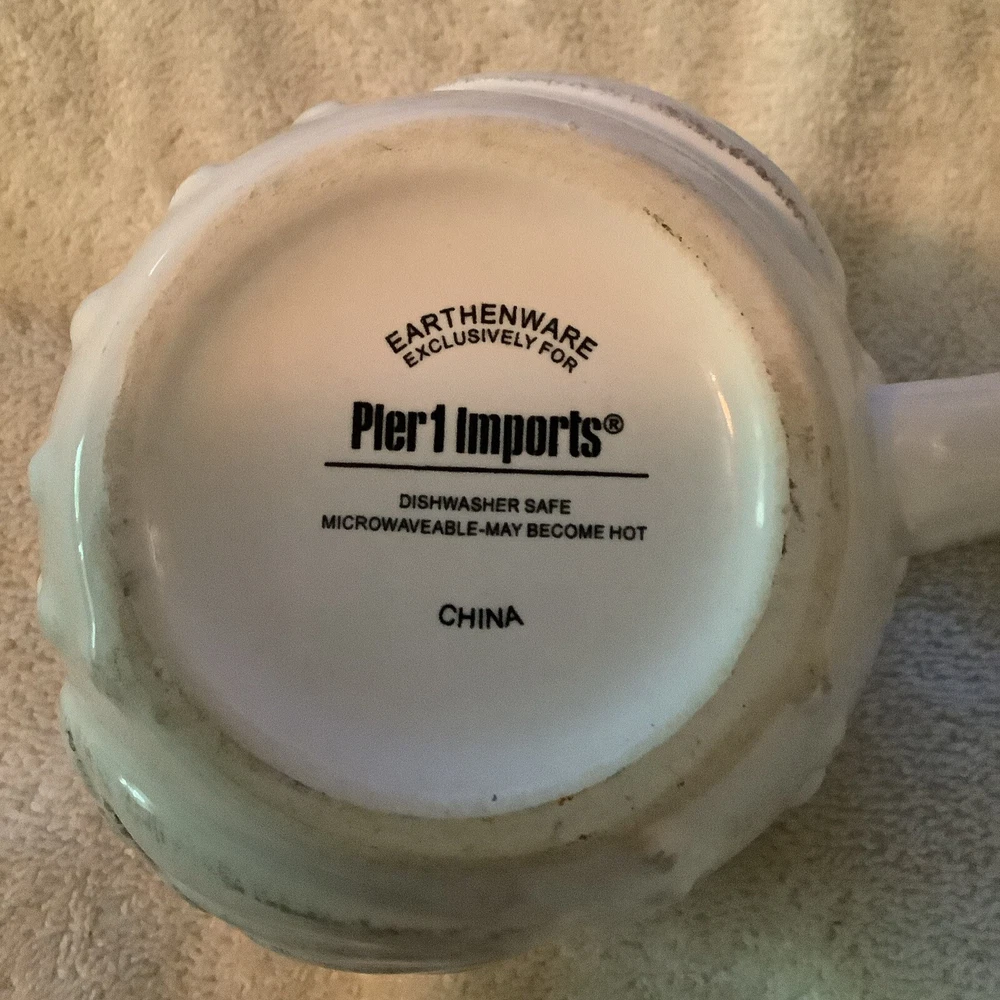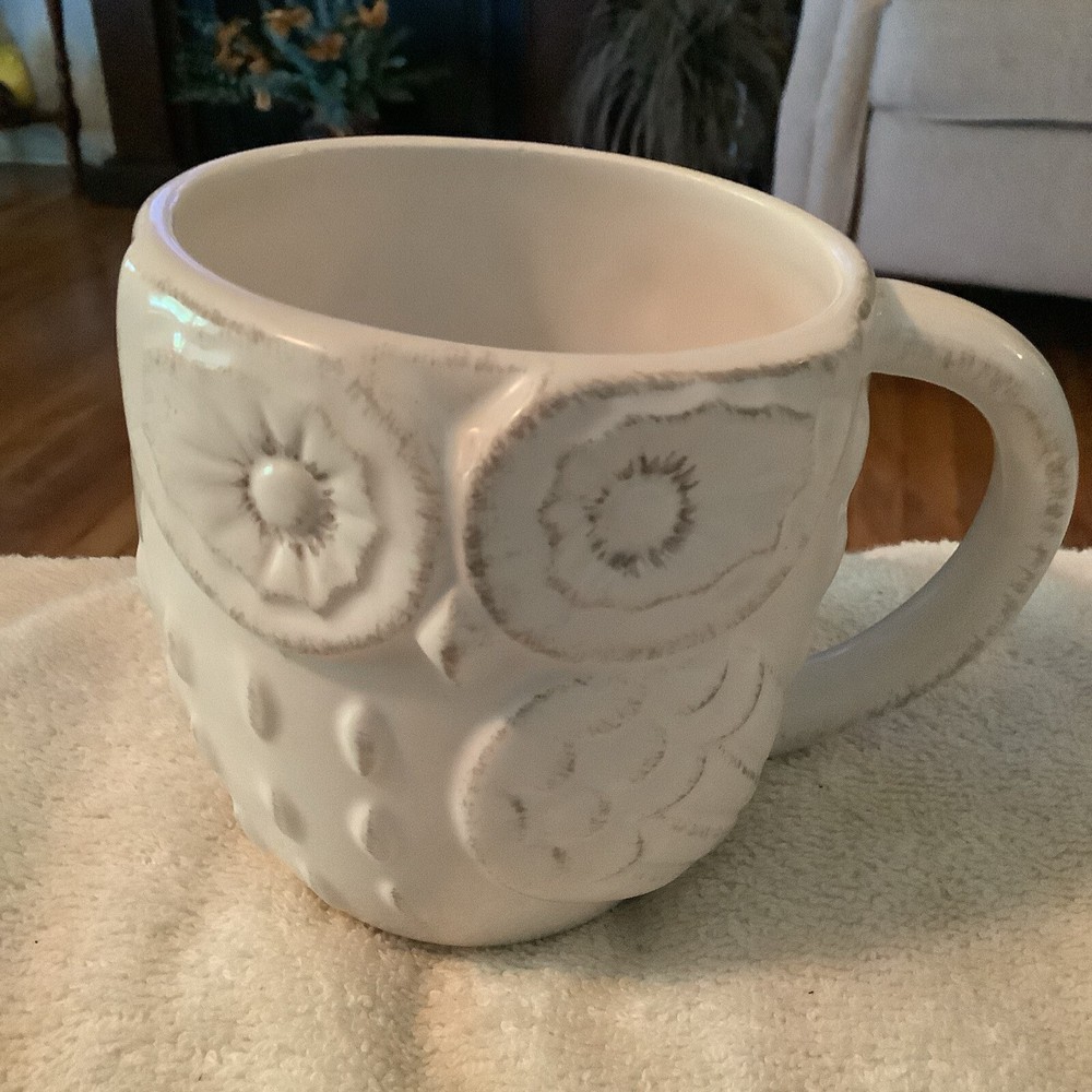 This unique coffee mug features a charming owl design, perfect for all occasions. The retro style and white color make it a great addition to any kitchen or dining area. With a capacity of 20 fl oz, it's perfect for enjoying your favorite hot beverage. No chips, cracks or other issues. Made from high-quality ceramic, this limited edition mug is suitable for hot beverages and discontinued. It's a great choice for anyone who loves owls or California theme. The mug is personalized with the Pier 1 Imports brand and comes with a coffee cup set.