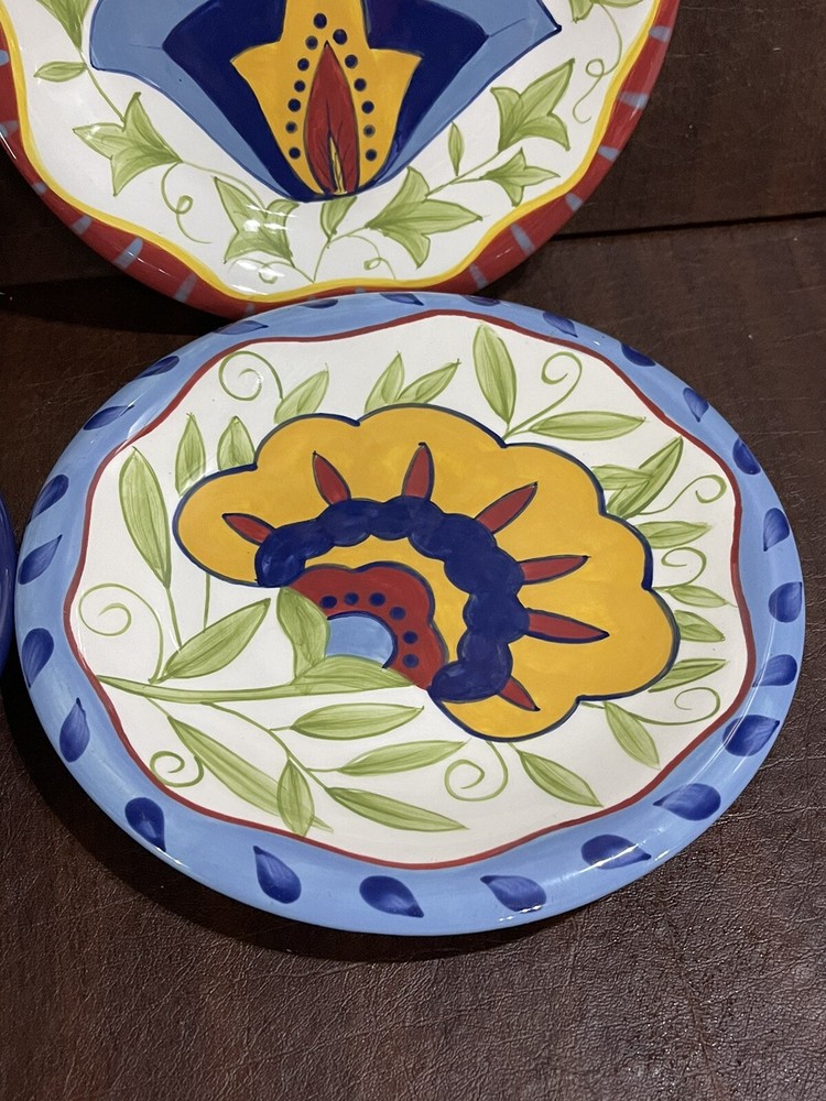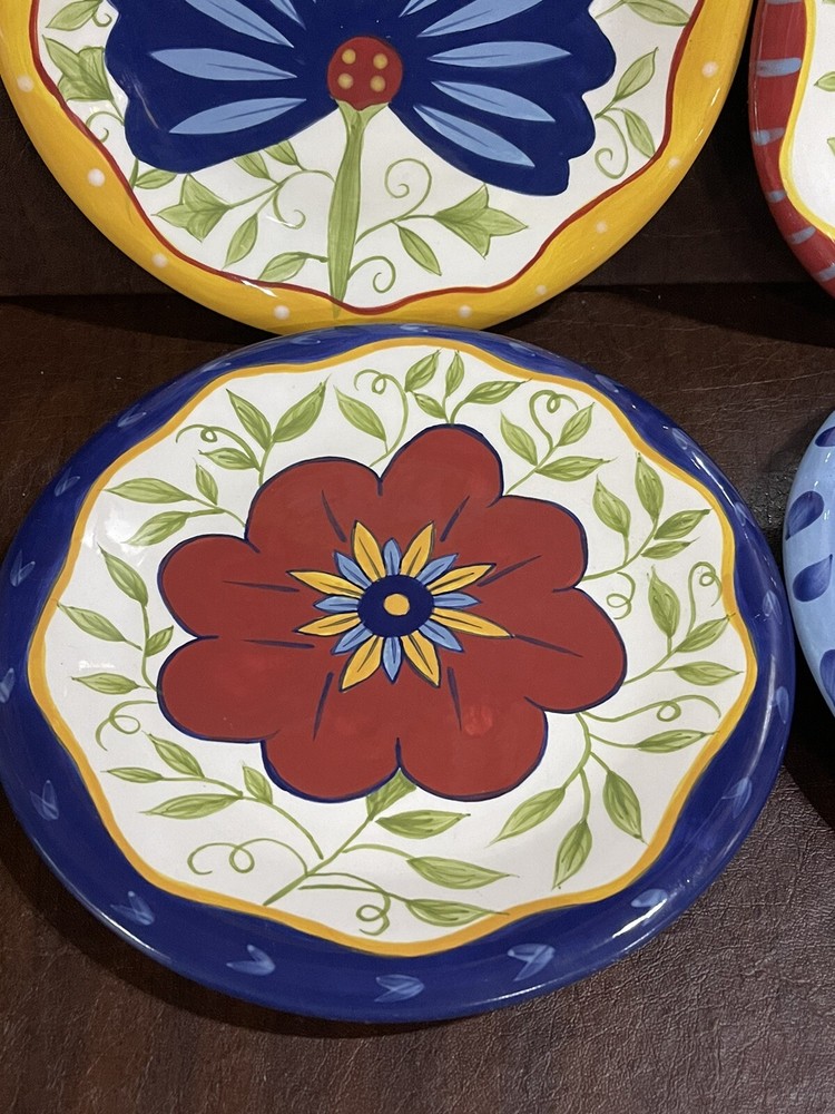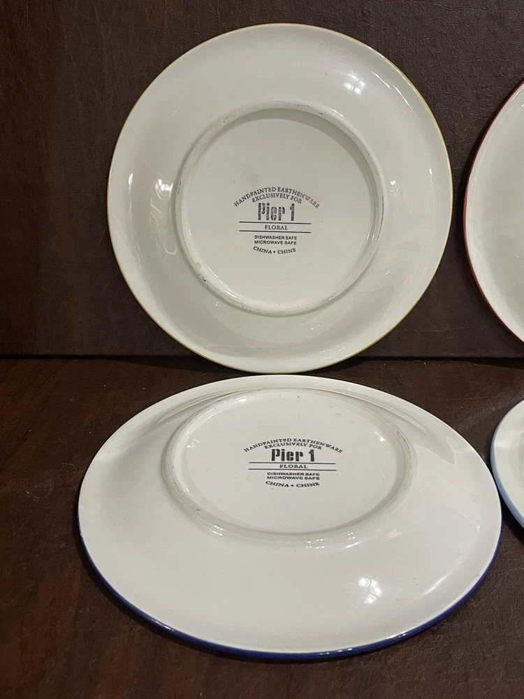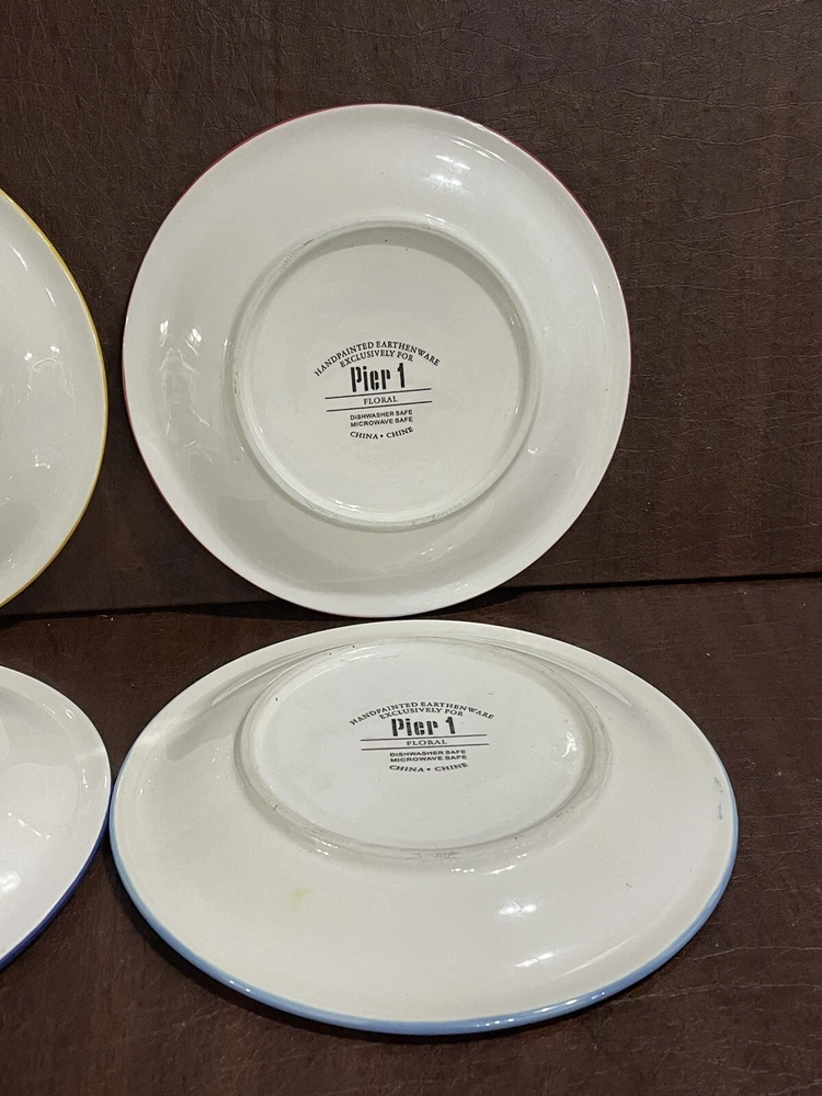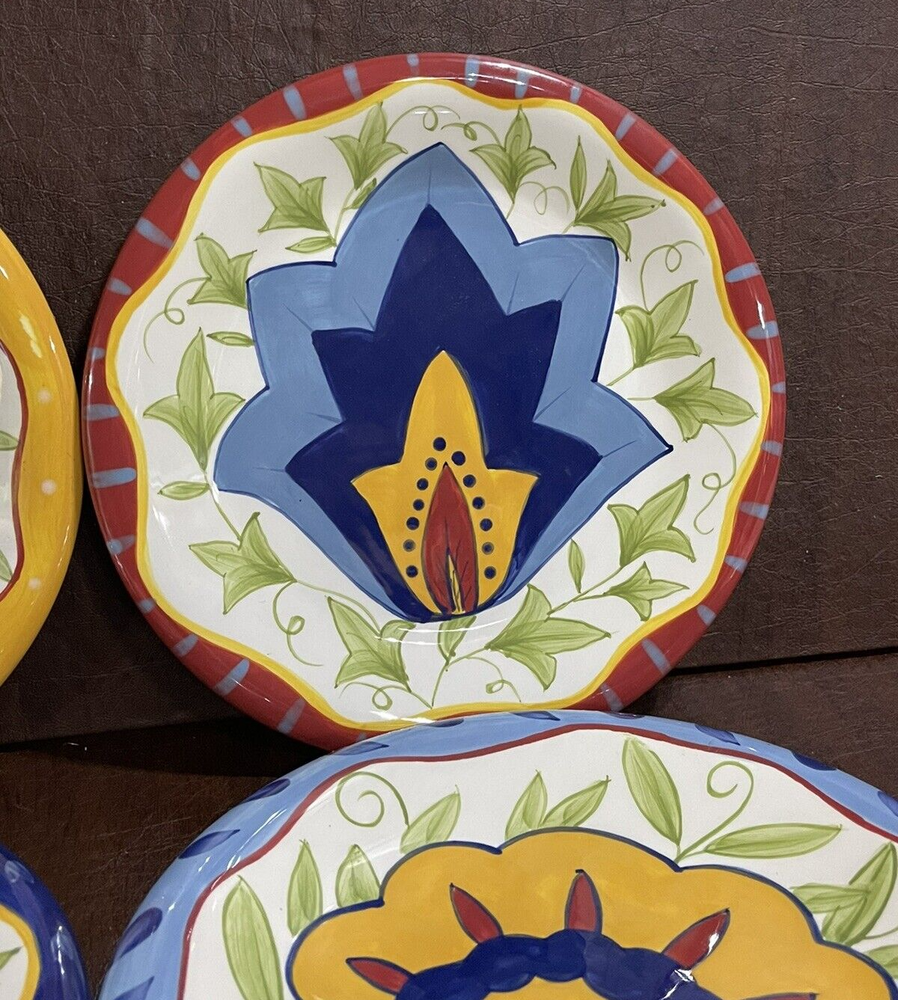 Pier 1 Imports Colorful Earthenware Flower Salad Plates Set of 4 EUC...