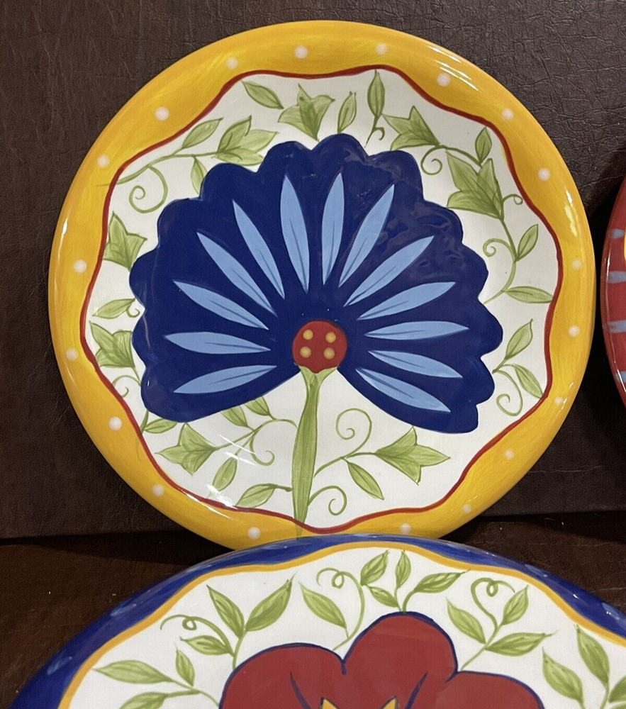 Pier 1 Imports Colorful Earthenware Flower Salad Plates Set of 4 EUC