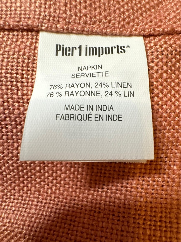 Pier 1 Imports Coral Pink Rayon & Linen Blend Cloth Napkins 20" x 20" NWOT/New The color is a pinkish coral color. Square napkins, knit, 20" x 20". Unused, new without tags....