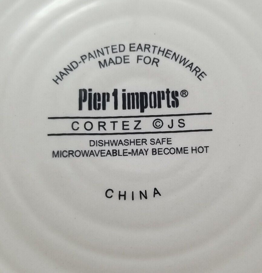Pier 1 Imports Cortez Salad Plate Green Blue Hand Painted 8 3/4" Dia. See Photos as they are part of description Very Good Condition! Please Note: You must pay through Paypal within 3 days. Happy to combine shipping on multiple purchases. Sorry, no combined shipping on international purchases. *********** We have 3 day handling reason lot of order, need 3 days to keep up If needed soon pls email me or live note to seller so that we can accommodate *****Return Policy***** If you are not happy with your purchase for any reason, ship item back within 30 days of receiving item for an exchange or refund. Item must be received in same condition as sold . It is Very poor etiquette to leave a bad or nasty feedback without contacting me first, to give me a chance to resolve the issue. Thank you for being a considerate buyer Good Luck and Happy Bidding! Please check out my other auctions! Thank you