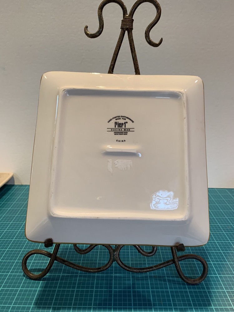 Pier 1 Imports Cucina Roma Earthenware Ceramic 8.5” Square Plate Tuscan Style. Cute for Appetizers, Snacks, Cheese, etc. Bring an appetizer to a party and leave the dish with the host!! Will Ship Within 3 Days of Payment. Sold as is- no Returns. Will Ship Only Within The United States. Thanks! *Easel NOT included.