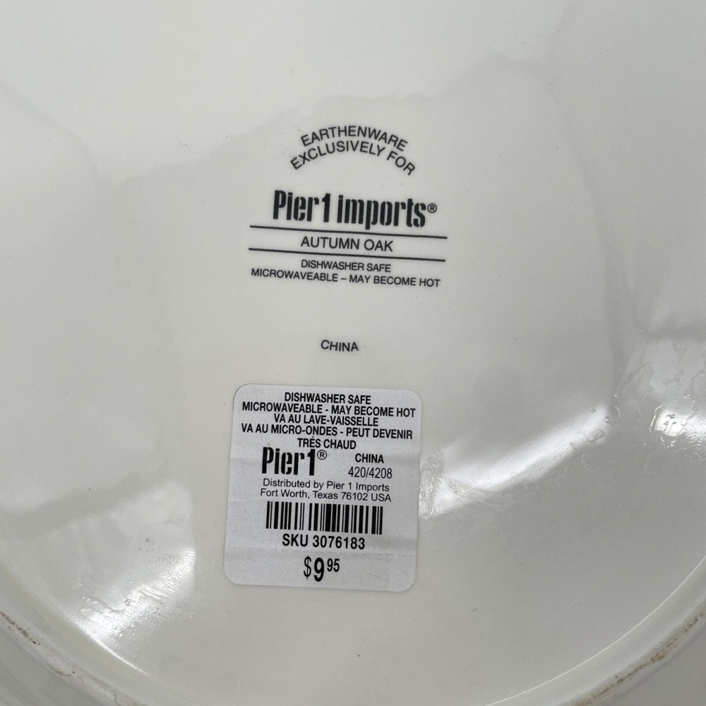 Absolutely love this plate! The warm Autumn Oak design adds such a cozy, rustic charm to my table. The quality is fantastic—sturdy, smooth, and the perfect size for generous servings. Thrilled to find a replacement after mine was discontinued. Matches my set perfectly, and the photos accurately showed the beautiful detailing. Highly recommend for anyone missing this classic Pier 1 style!