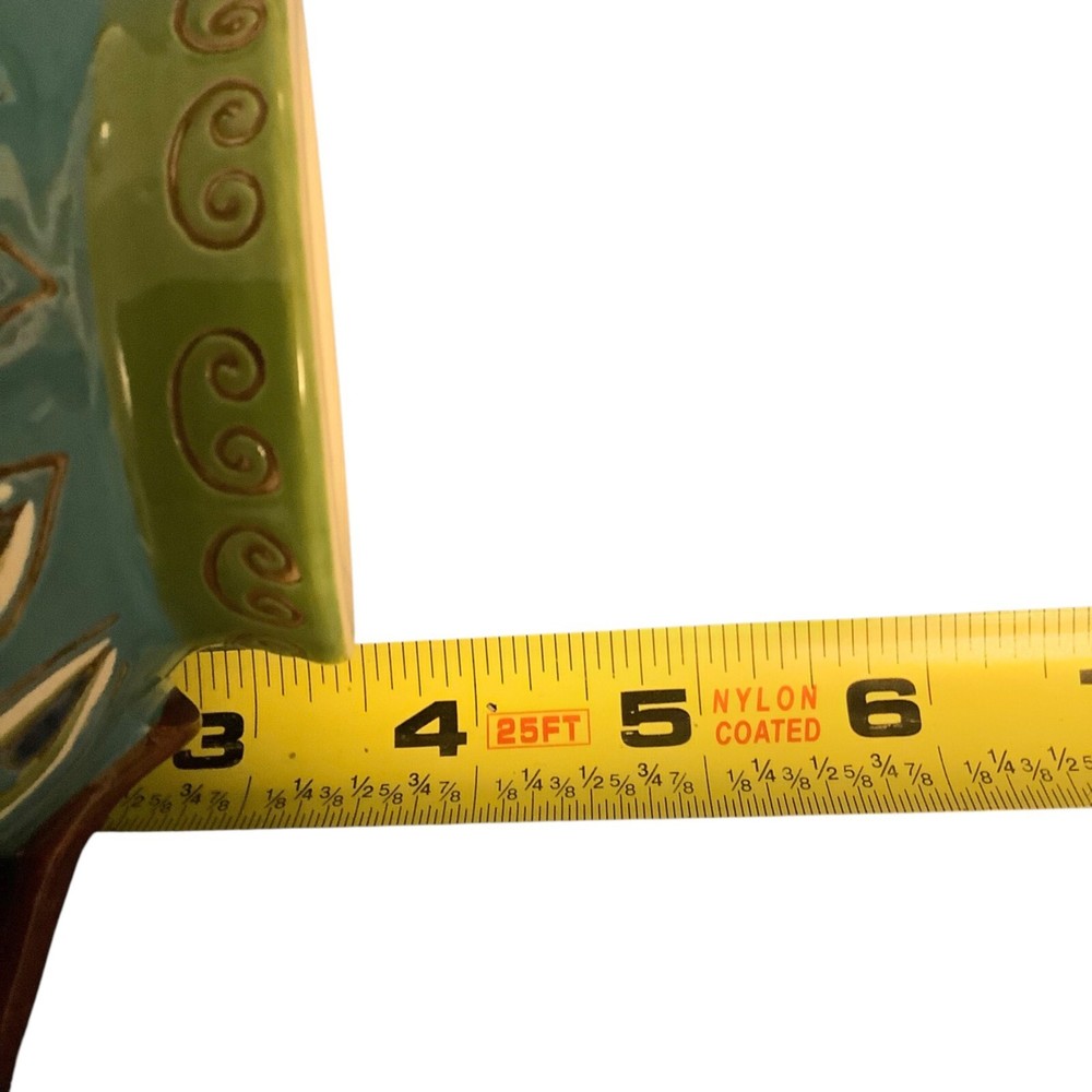 This ceramic mug features a captivating peacock feather pattern, adding an elegant touch to your drinkware collection. Its design is both aesthetically pleasing and functional, suitable for use in microwaves and dishwashers. The hand-painted details and rich colors make it a refined choice for enjoying your favorite beverages. • Dishwasher & microwave safe • Hand-painted dolomite • Exclusive Pier 1 Imports design Good preowned condition Smoke free home See photos for additional information