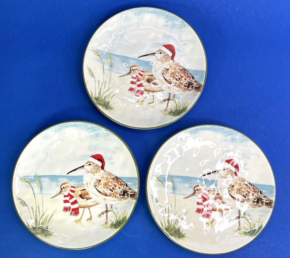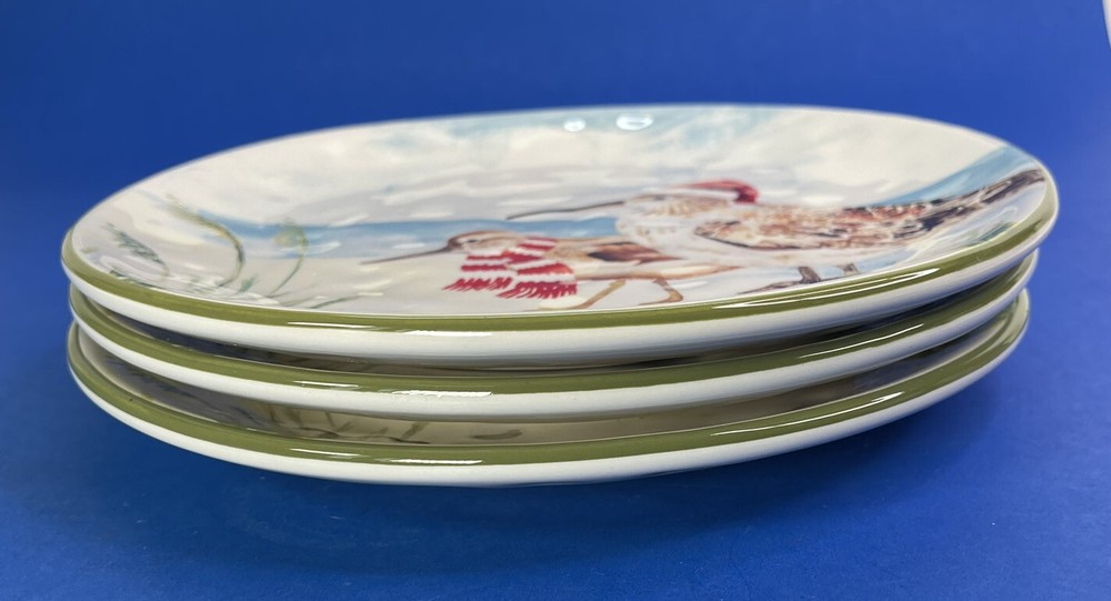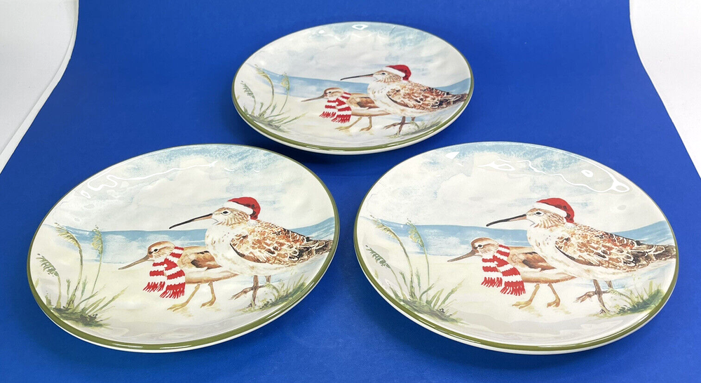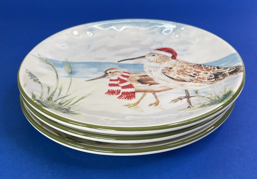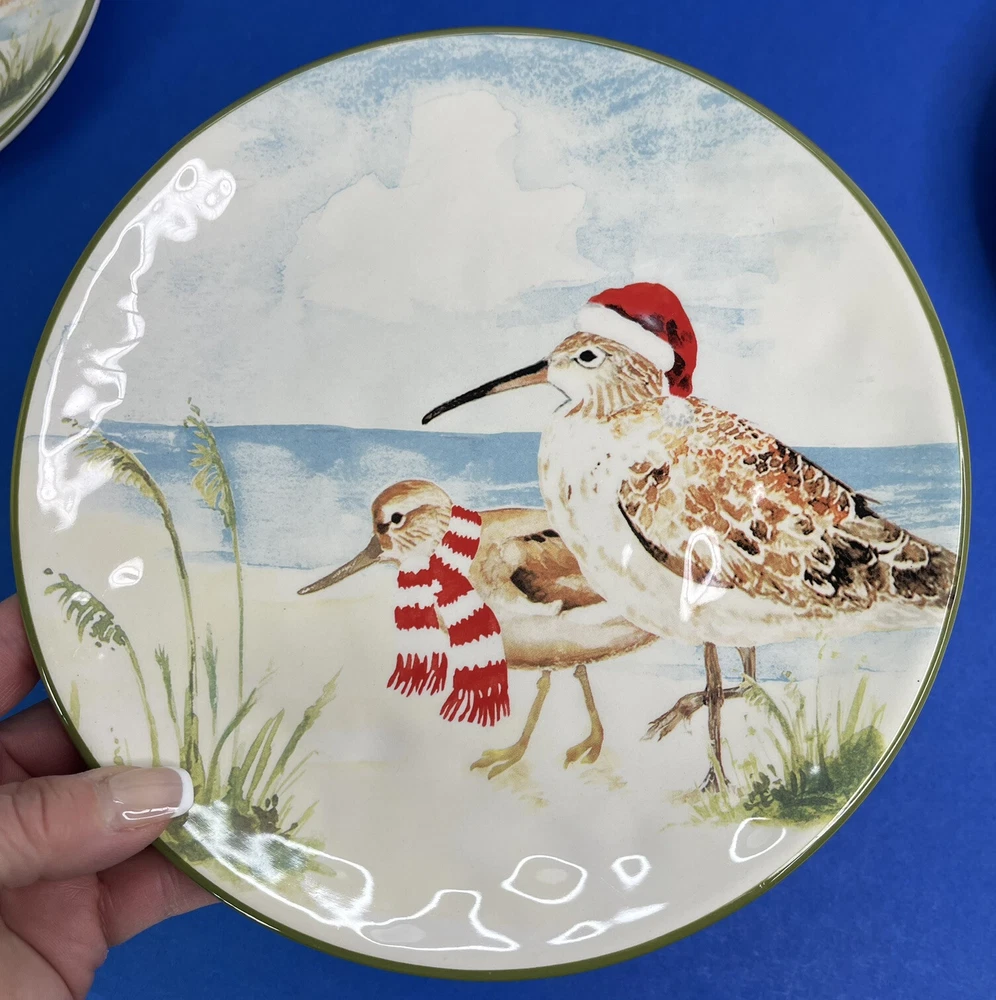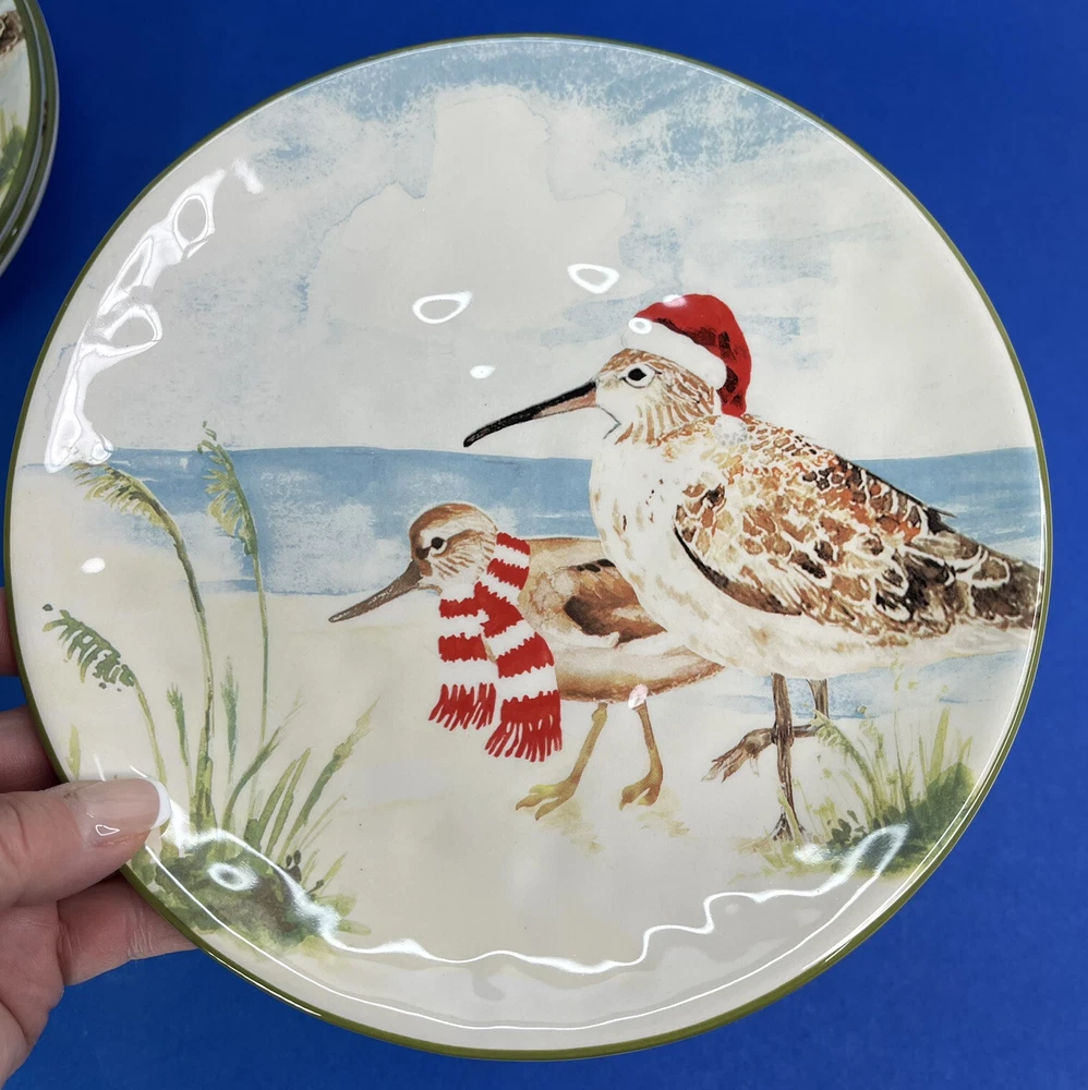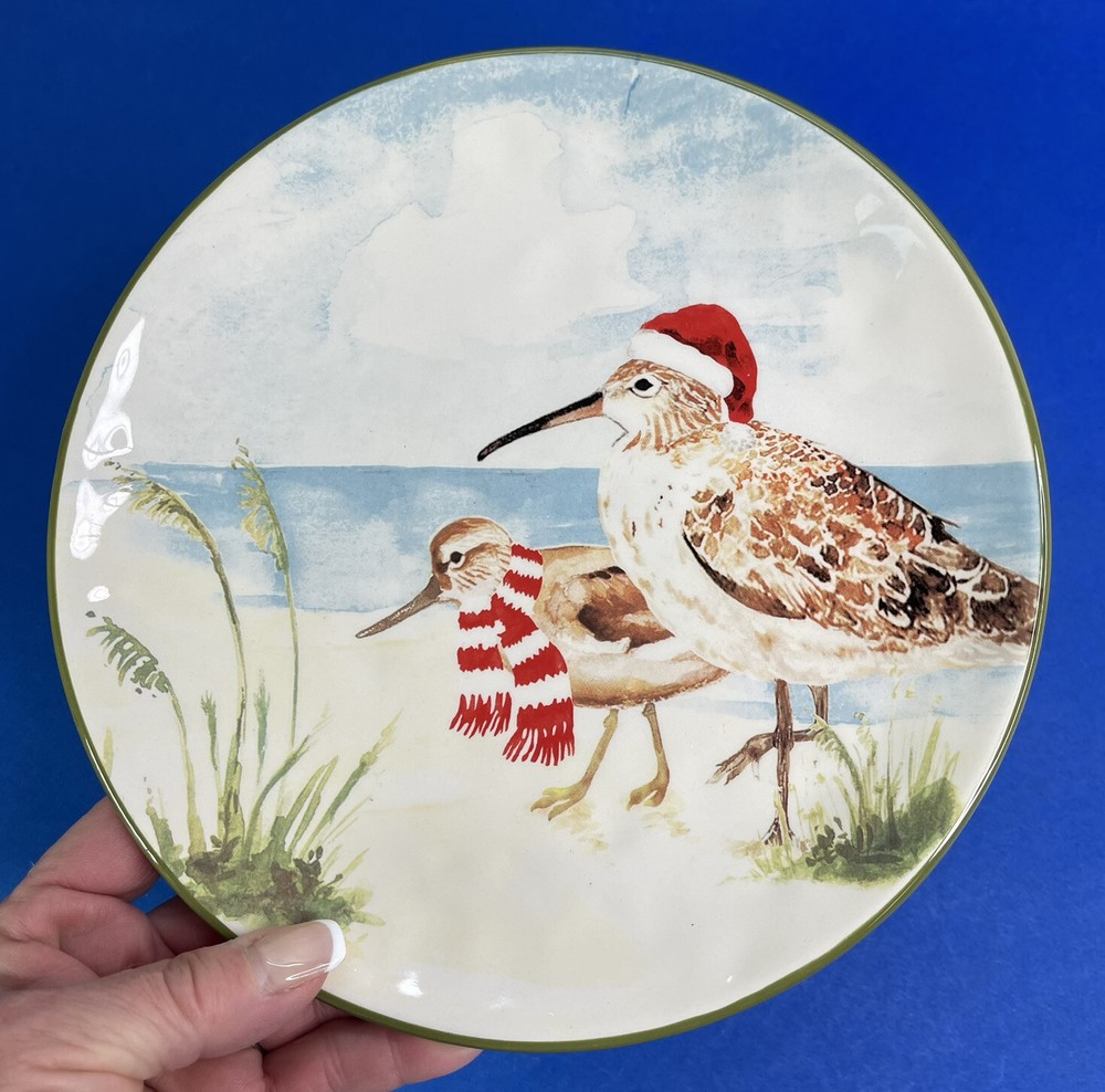 Pier 1 Imports Hand Painted Dolomite Plates Sandpipers On Beach Christmas Great Condition! Measures: 8.5" Diameter Very Collectible! FAST & FREE WITH SAME DAY SHIPPING!!! Ships USPS Gound Advantage Mail, UPS Ground or Fed Ex Ground (depending on location) *** Excludes Hawaii, Alaska & PR
