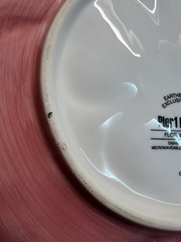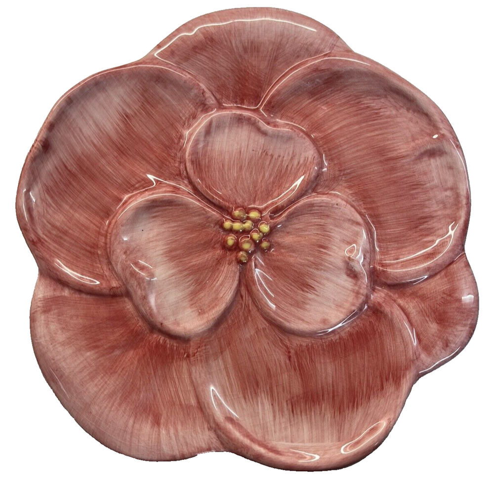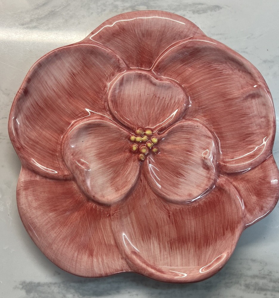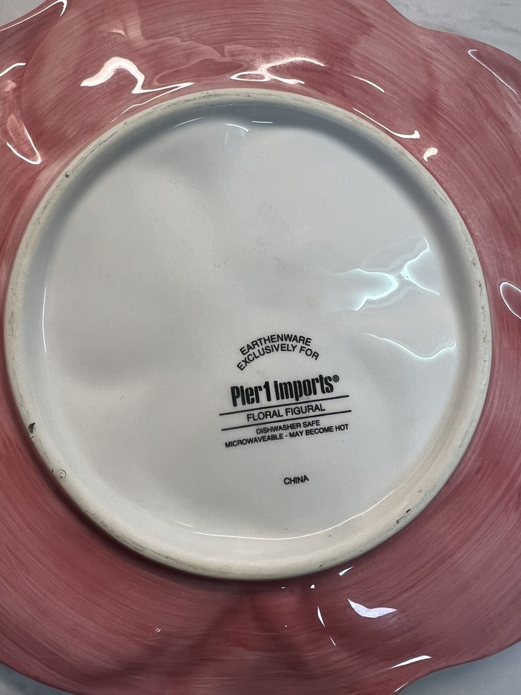 Pier 1 Imports Dolomite Salad Plate Pink Poppy Hibiscus Flower Figural Accent 9”. Great condition. See Photos Replacement plate. Very Pretty