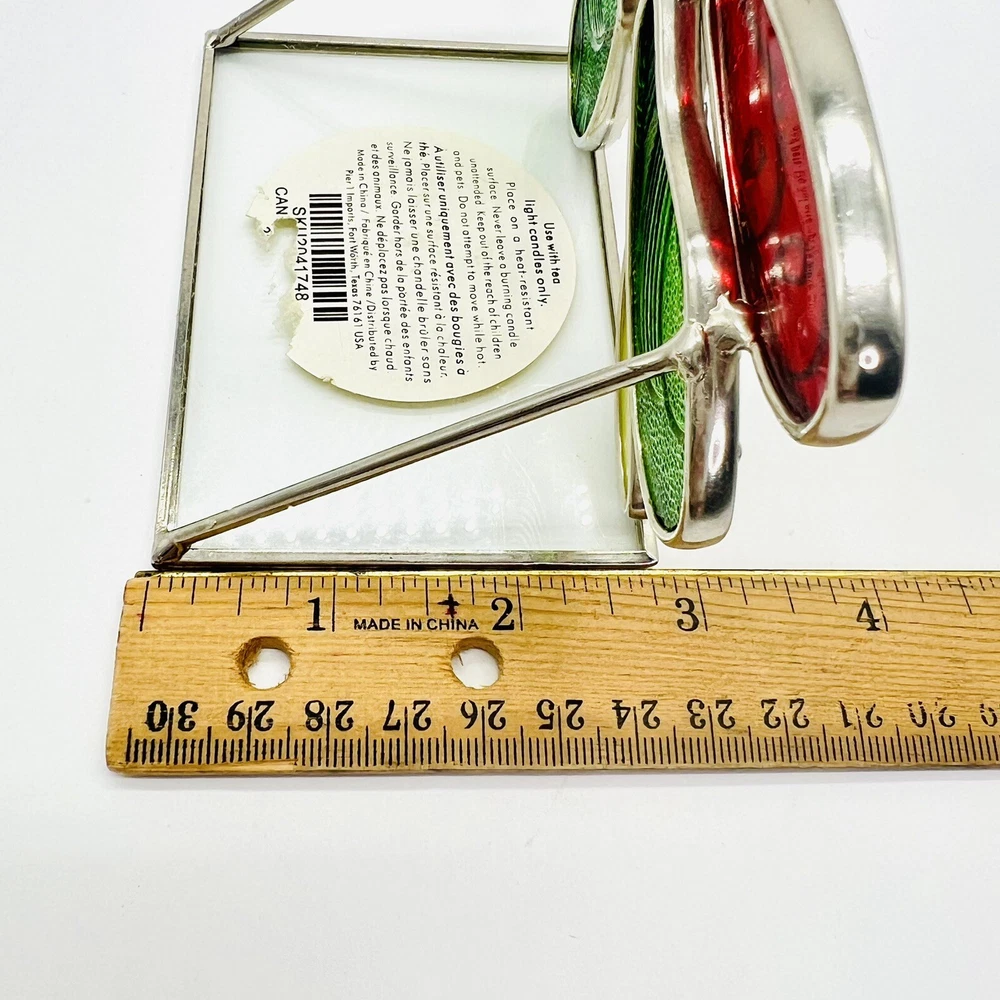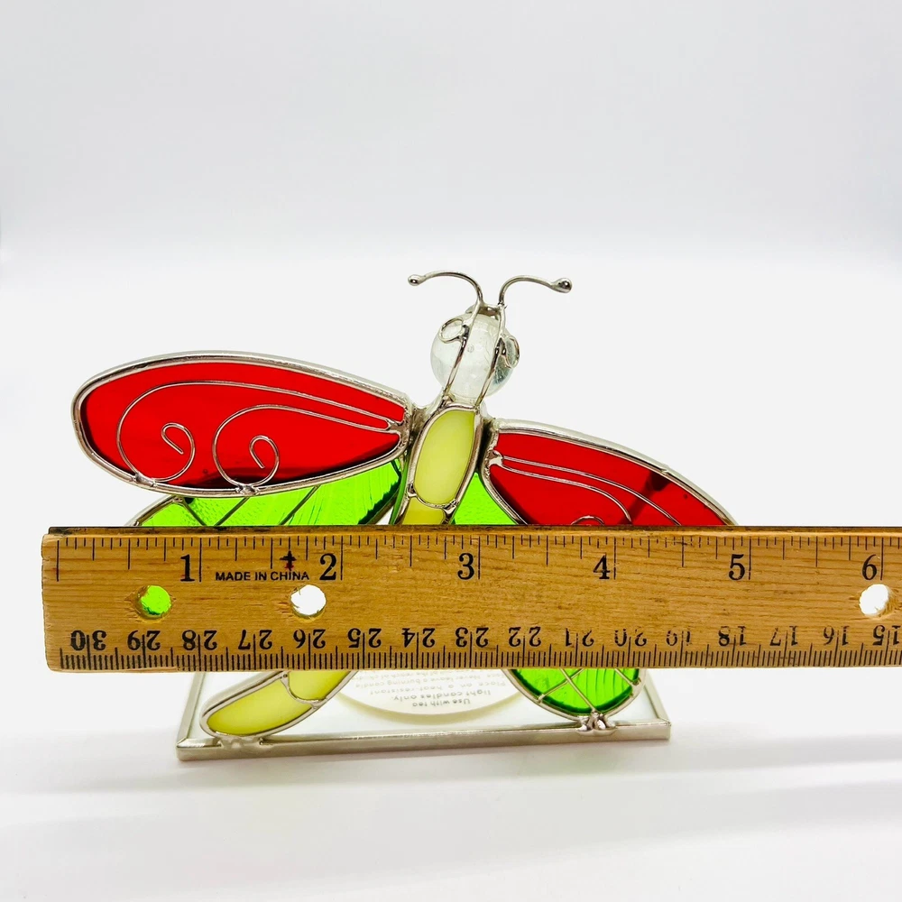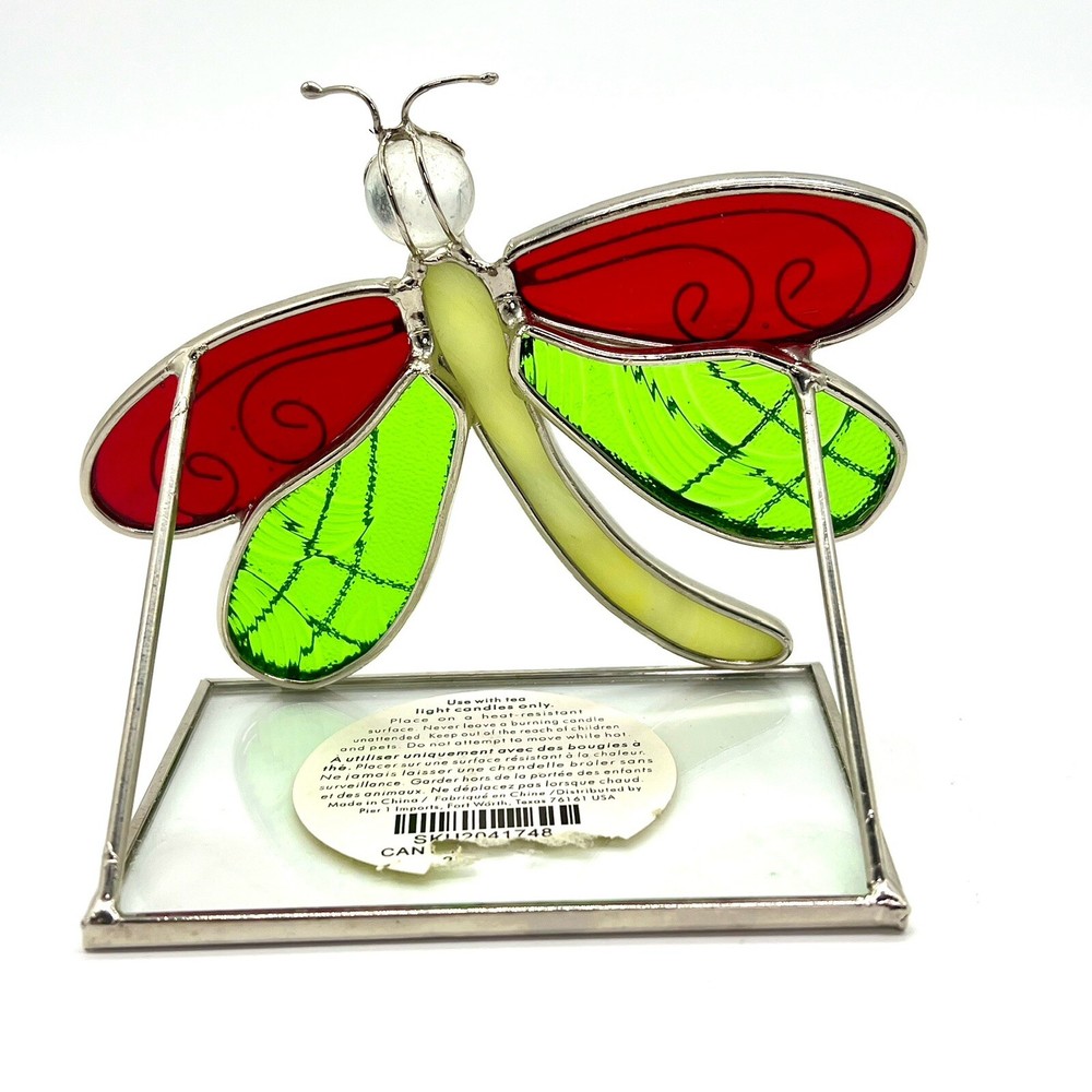 Pier 1 Imports Dragonfly Red and Green Stained Glass Votive or Tea Light Candle Holder, 3.75 in Tall