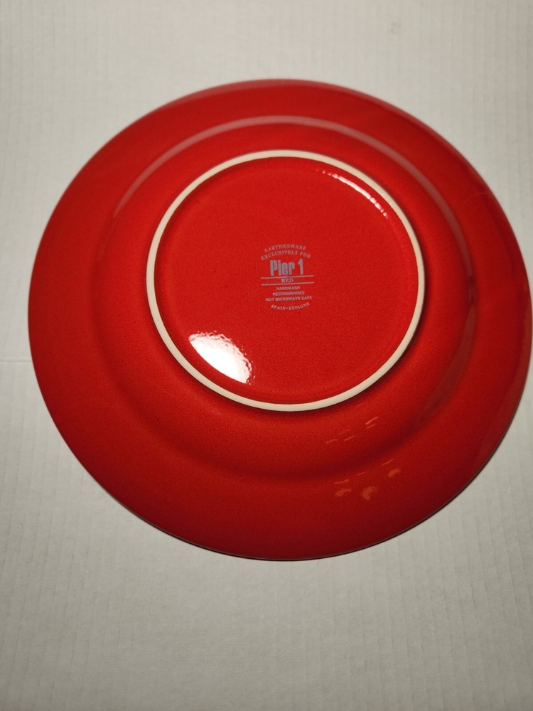 Pier 1 Imports Earthenware Christmas Red Dinner Plate 10.5” EUC Spain. 6 Available.