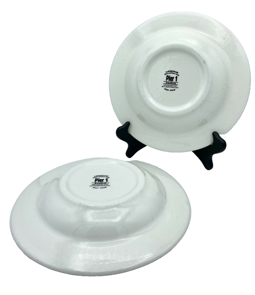 Pier 1 Earthenware "Sophie" 9" Dish/Bowl Made in Italy Note: This is a pre-owned item, free of chips and cracks. This item does have some crazing, Please see the photos for proof of the condition and as part of the description. Measures: 9.25" D Includes 2 Plates Colors: Browns, Green, Blue and Off White Returns are accepted and questions are always welcome. Thank you and have a great day. K