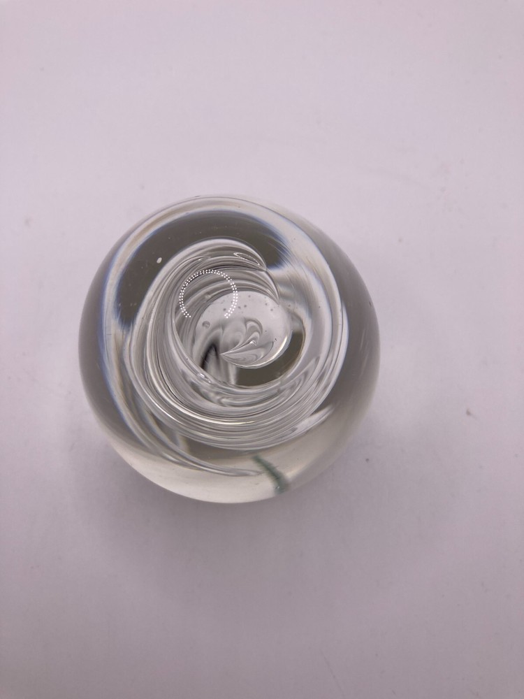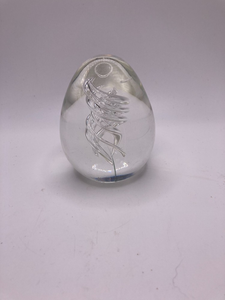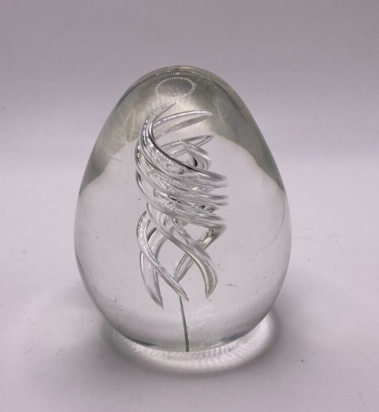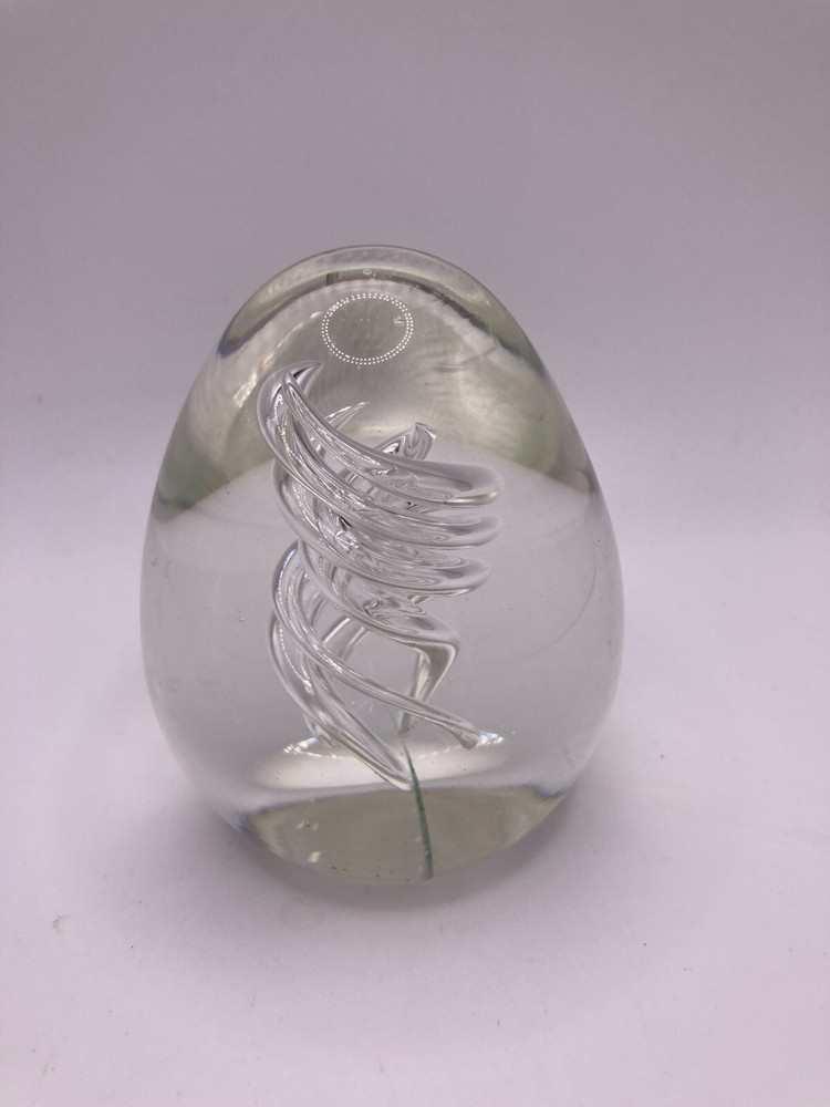 Pier 1 Imports Egg Shape Clear Paperweight With Swirl Design Inside 3" Tall Good Clean Condition - no chips cracks or blemishes...