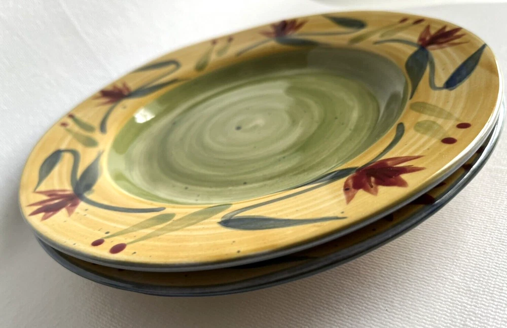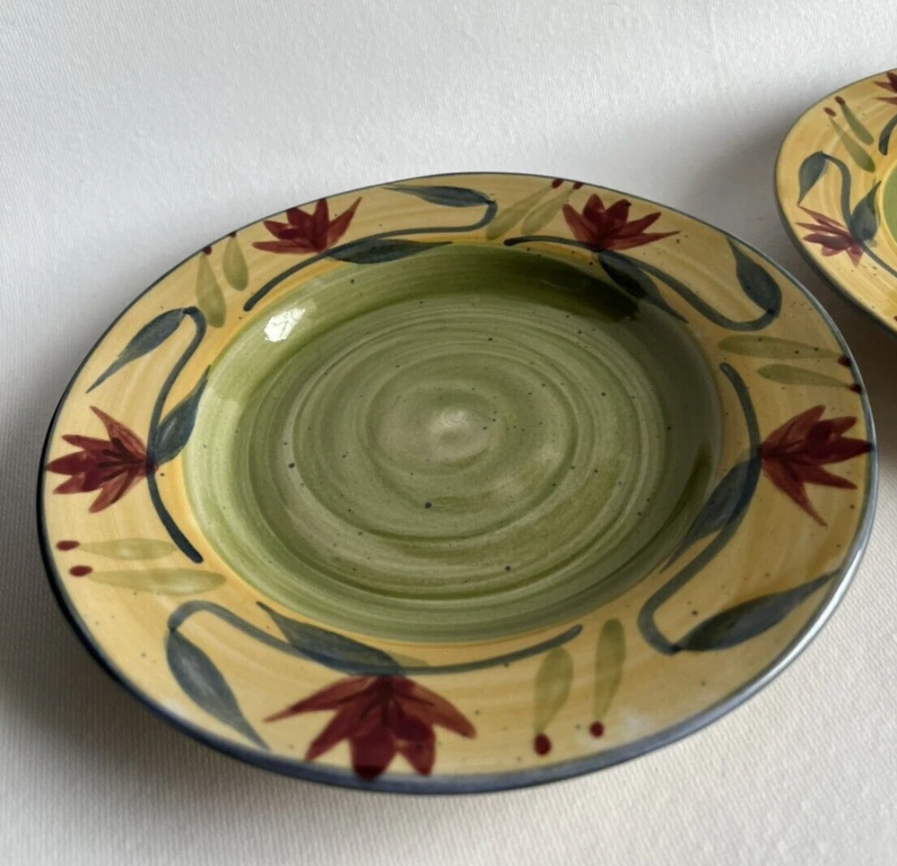 Pier 1 Imports Elizabeth Handcrafted Earthenware Dessert Salad Plate Set of 2. The plates measures approximately 8" in diameter. Very good pre-owned condition, no chips or cracks. See all photographs for details of condition.