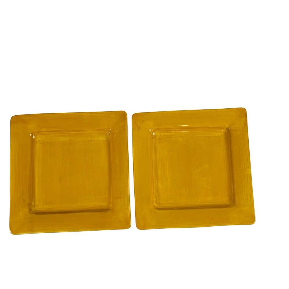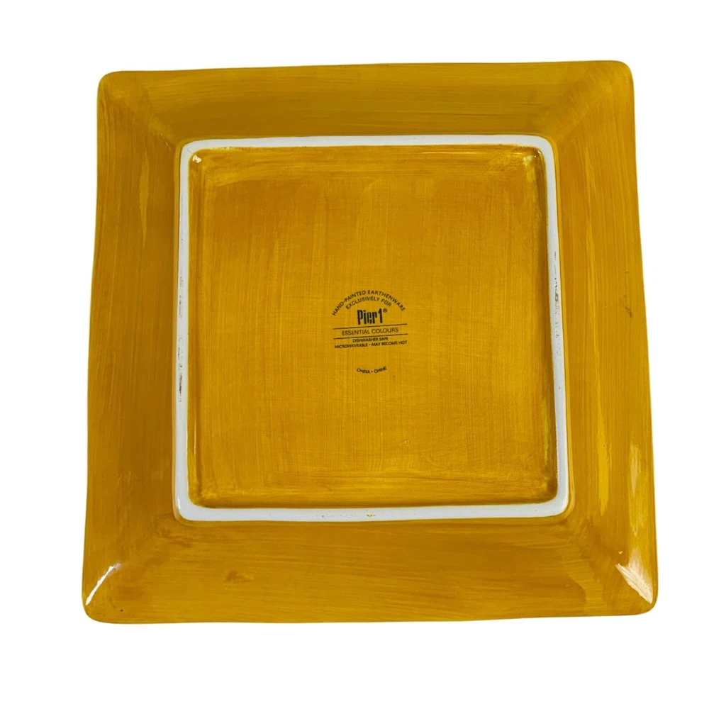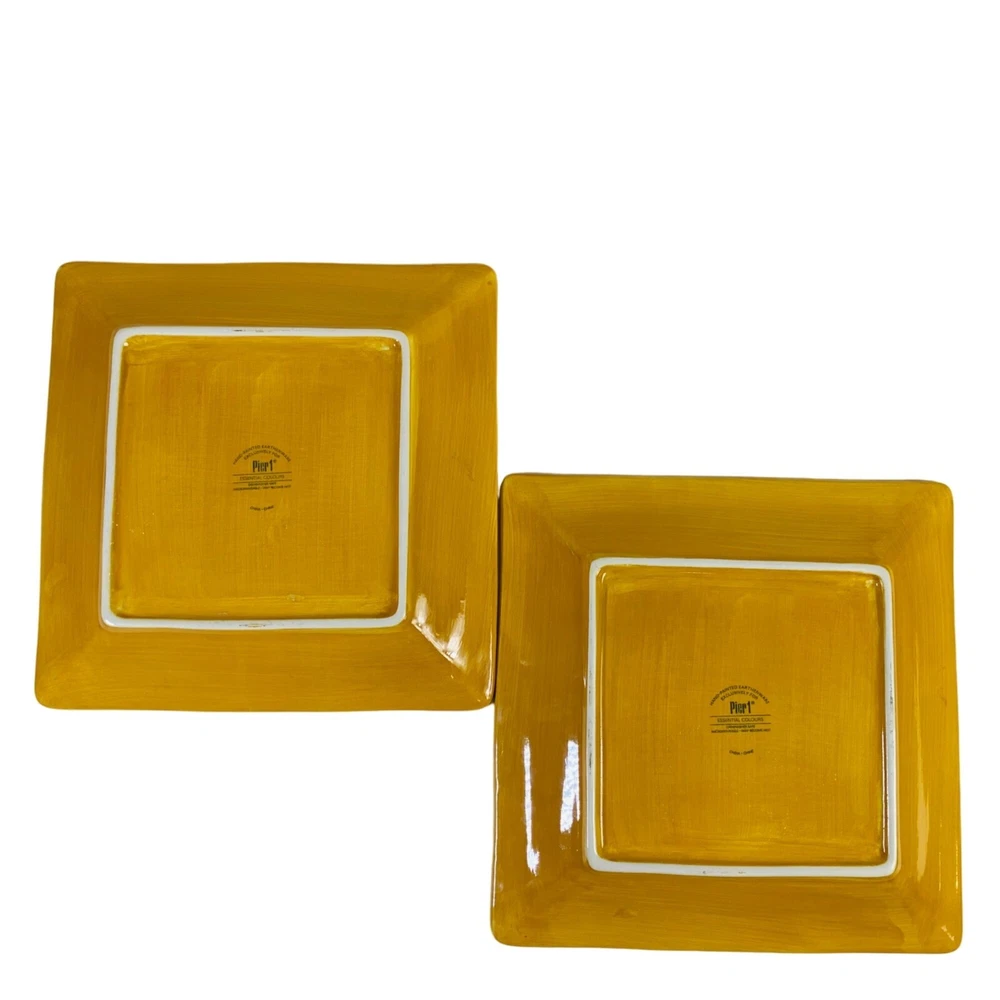 Pier 1 Imports Essential Colors Square Harvest Dinner Plates Set Of 2 Earthenware Golden Sun This dinner plate is the perfect replacement for your previous set. The Harvest Sunset Yellow from Essential Colors pattern features a square shape with a glazed finish, suitable for all occasions. Made of sturdy earthenware material with a shiny finish, this 10.5-inch plate is stackable and safe for use in the microwave and dishwasher. The set includes two pieces, to add to your existing set or making it convenient for small gatherings. Its theme of harvest sunset yellow adds a touch of elegance to any table setting. The care instructions are simple as it is machine washable up to 100°F. Preowned. These Pier 1 Imports dinner plate are in good condition with no chips or cracks. The plates are discontinued item, so dont miss the chance to add it to your collection. Please see all photos as they are part of the description. square plate, dinner plates, kitchen, stoneware, Pier 1 dinner plates, Square Harvest Plates, Autumn, Fall, Yellow dinnerware, Tranquil Gold pattern, Stoneware plates, 10.5-inch plates, Stylish dinnerware, Elegant dining, Durable stoneware, Harvest theme plates, Earthenware dinner set, Pier 1 Imports, Essential Colors plates lillycoopercloset