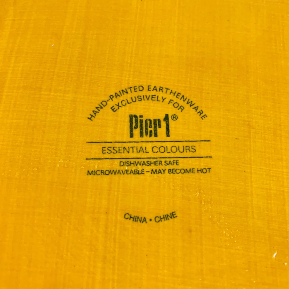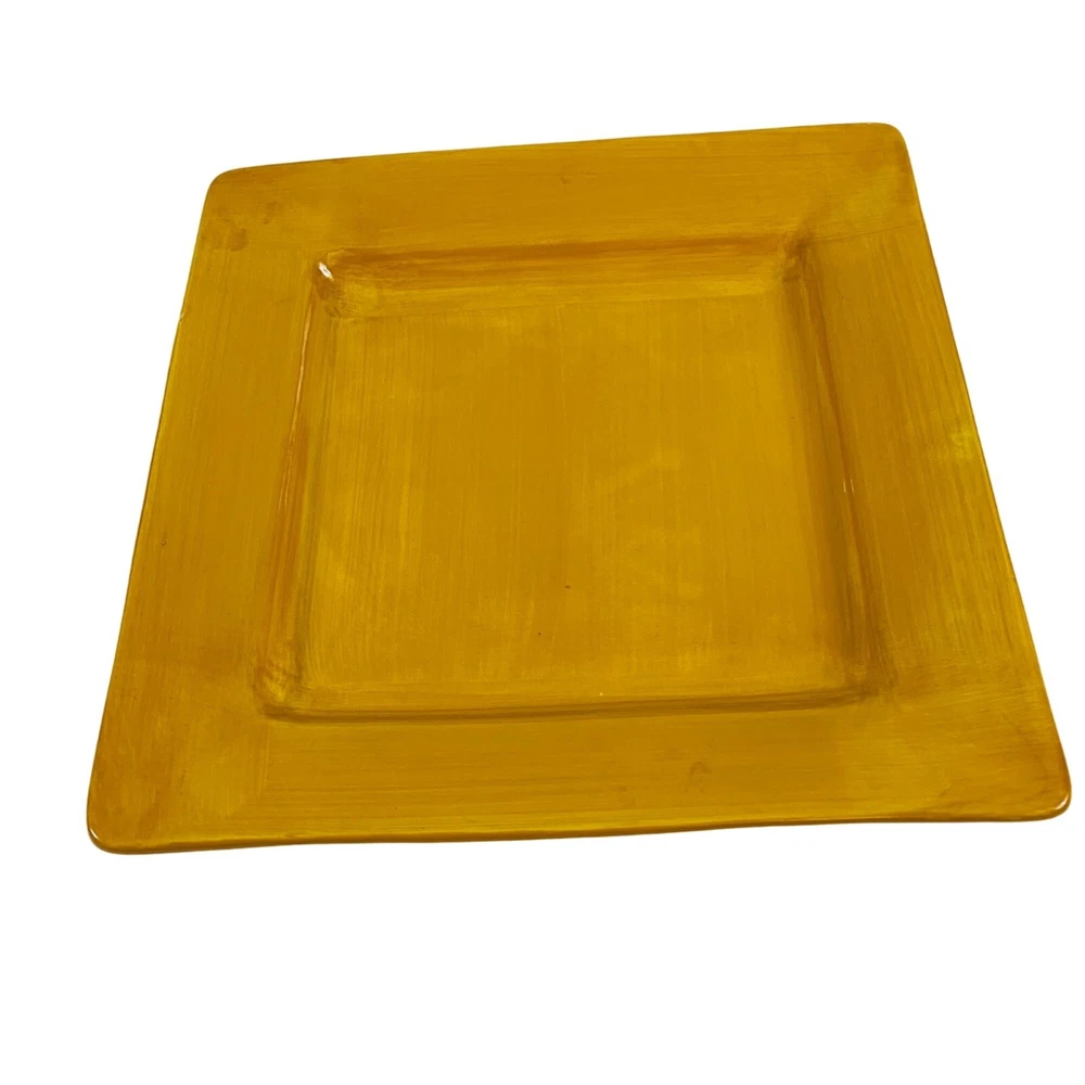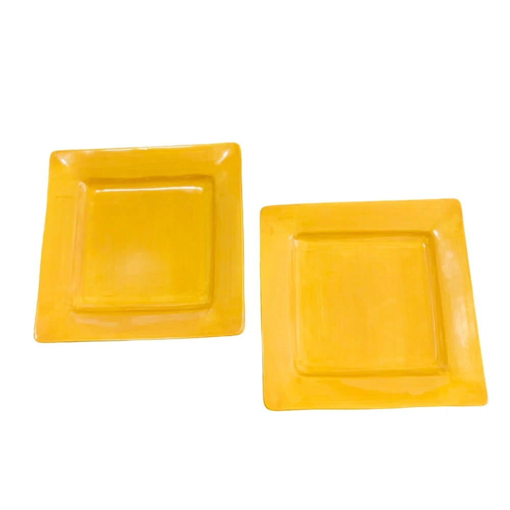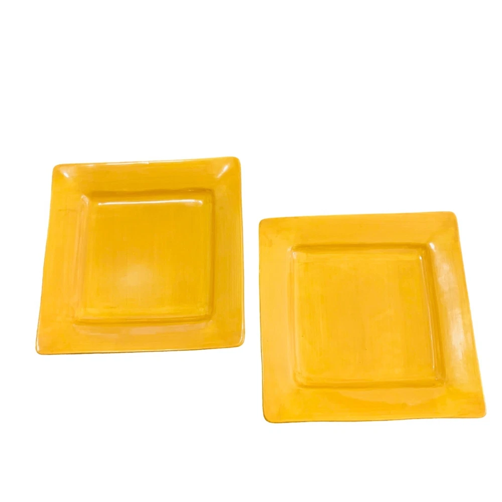 Pier 1 Imports Essential Colors Square Harvest Dinner Plates Set Of 2 Earthenware Golden Sun This dinner plate is the perfect replacement for your previous set. The Harvest Sunset Yellow from Essential Colors pattern features a square shape with a glazed finish, suitable for all occasions. Made of sturdy earthenware material with a shiny finish, this 10.5-inch plate is stackable and safe for use in the microwave and dishwasher. The set includes two pieces, to add to your existing set or making it convenient for small gatherings. Its theme of harvest sunset yellow adds a touch of elegance to any table setting. The care instructions are simple as it is machine washable up to 100°F. Preowned. These Pier 1 Imports dinner plate are in good condition with no chips or cracks. The plates are discontinued item, so dont miss the chance to add it to your collection. Please see all photos as they are part of the description. square plate, dinner plates, kitchen, stoneware, Pier 1 dinner plates, Square Harvest Plates, Autumn, Fall, Yellow dinnerware, Tranquil Gold pattern, Stoneware plates, 10.5-inch plates, Stylish dinnerware, Elegant dining, Durable stoneware, Harvest theme plates, Earthenware dinner set, Pier 1 Imports, Essential Colors plates lillycoopercloset