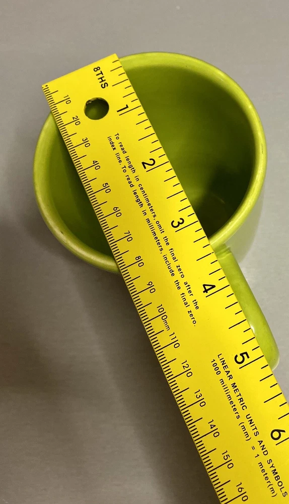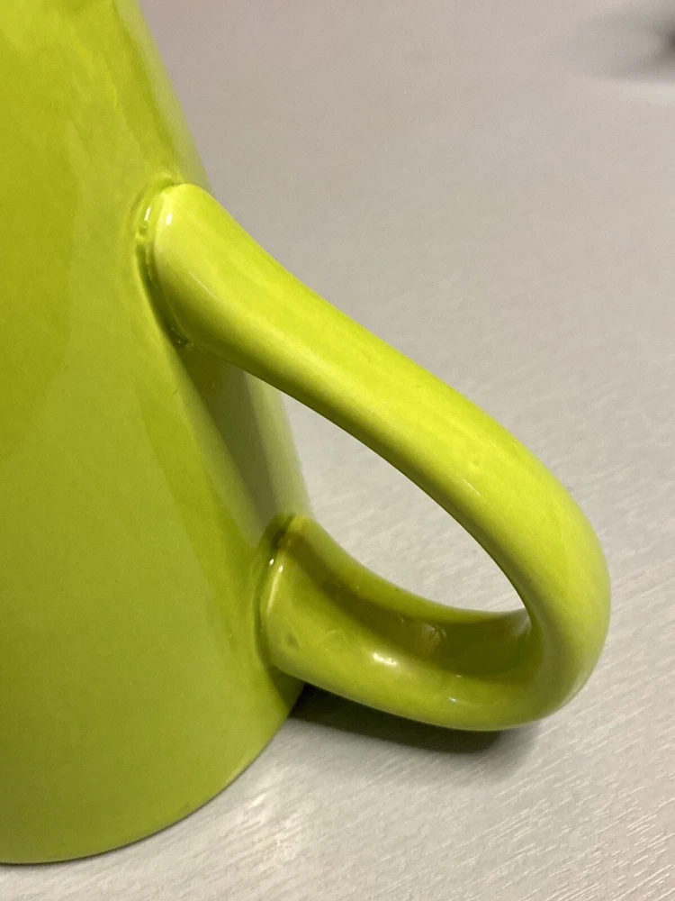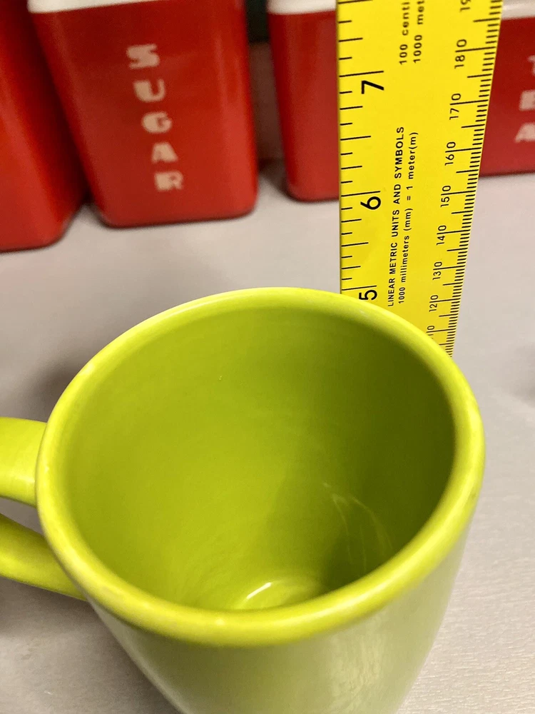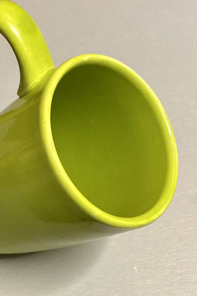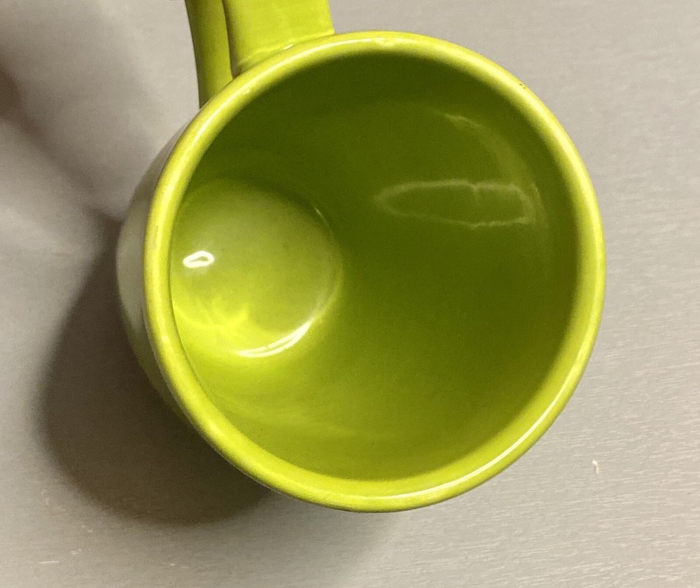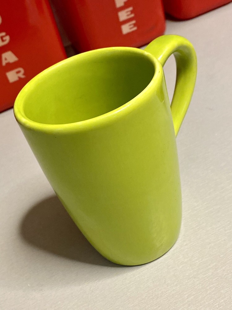 This hard to find Pier 1 mug is in great used condition! From the “Essential Colours” edition! Color is a bright lime green! Please view all my photos, read more details below, and message me with any questions! Thanks for looking! Add a pop of color to your morning routine with this gorgeous lime green coffee mug from Pier 1 Imports! Crafted from ceramic and earthware materials, this handcrafted mug is both durable and stylish! The round shape and glossy finish make it a perfect addition to any kitchen decor! With a 5-inch height and a handle, this mug is perfect for your daily coffee or tea fix! It is also microwave and dishwasher safe, making it convenient for all occasions! The art deco style and printed backstamp complete the look of this original piece! Don't miss out on adding this Essential Colours mug to your collection!