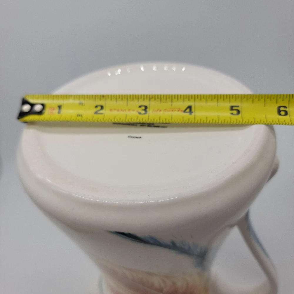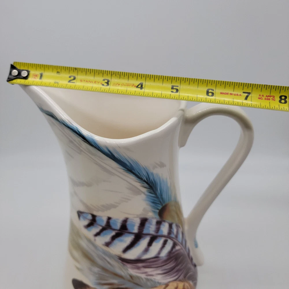 Ironstone Exclusively for Pier 1 Imports Multicolored Feather Design Water Pitcher Retired Exclusive. No chips or cracks, clean inside and out. Measures approx. 9 5/8" tall and 7 1/2" spout to handle see photos for details.