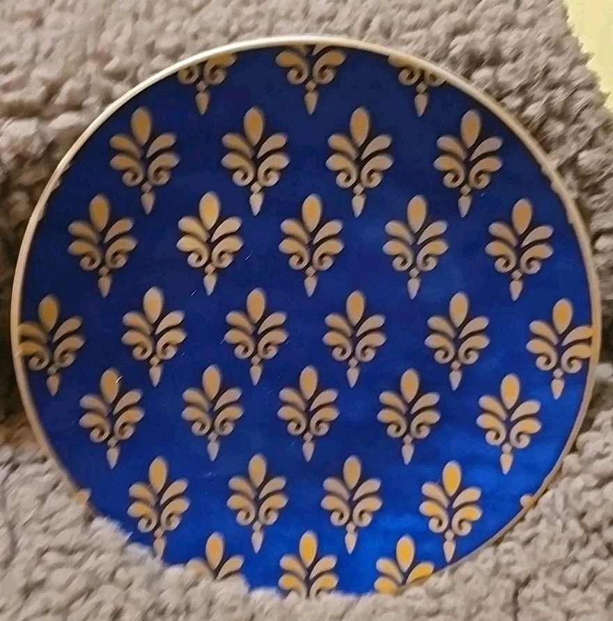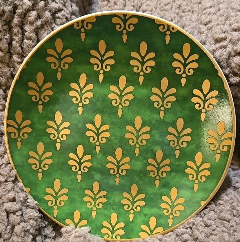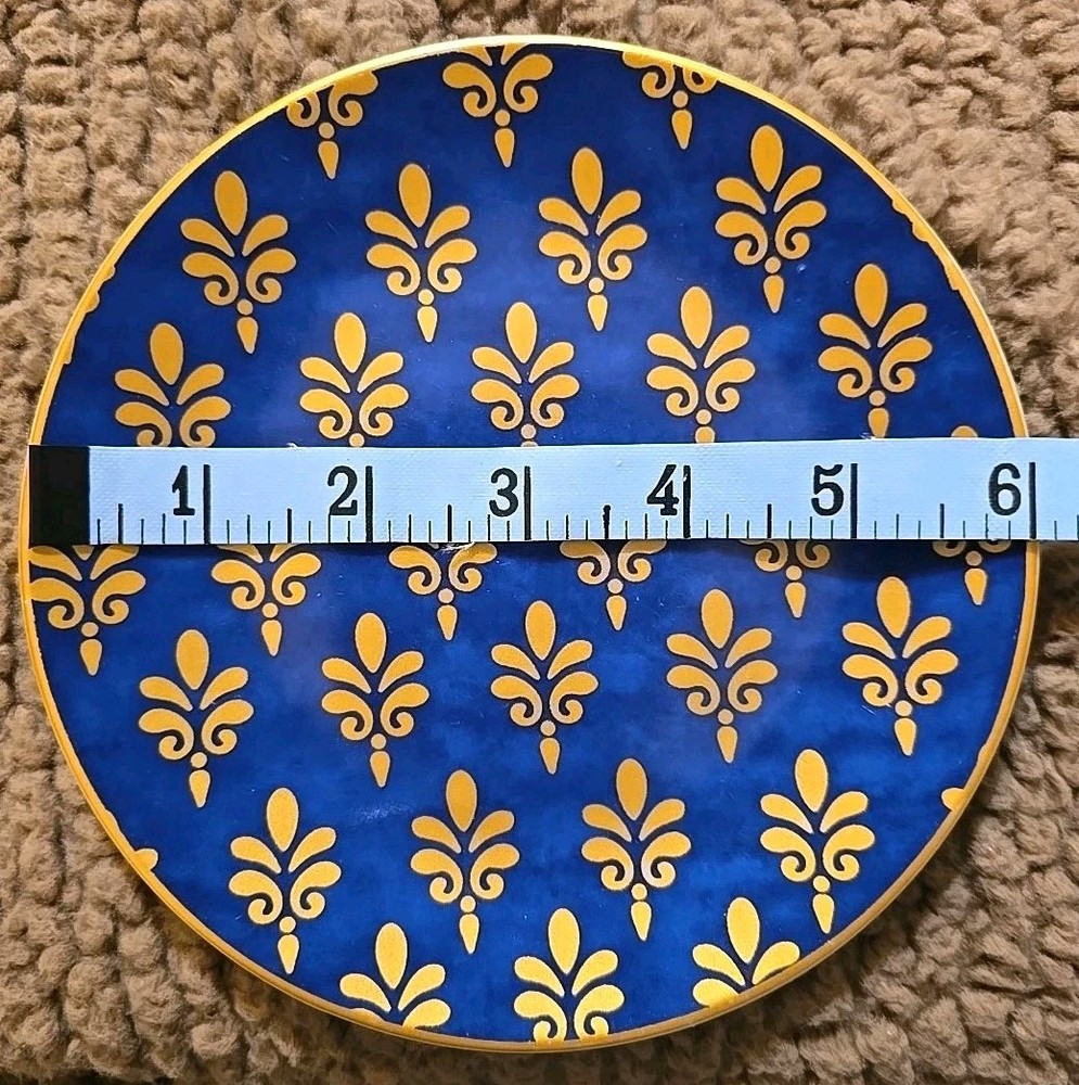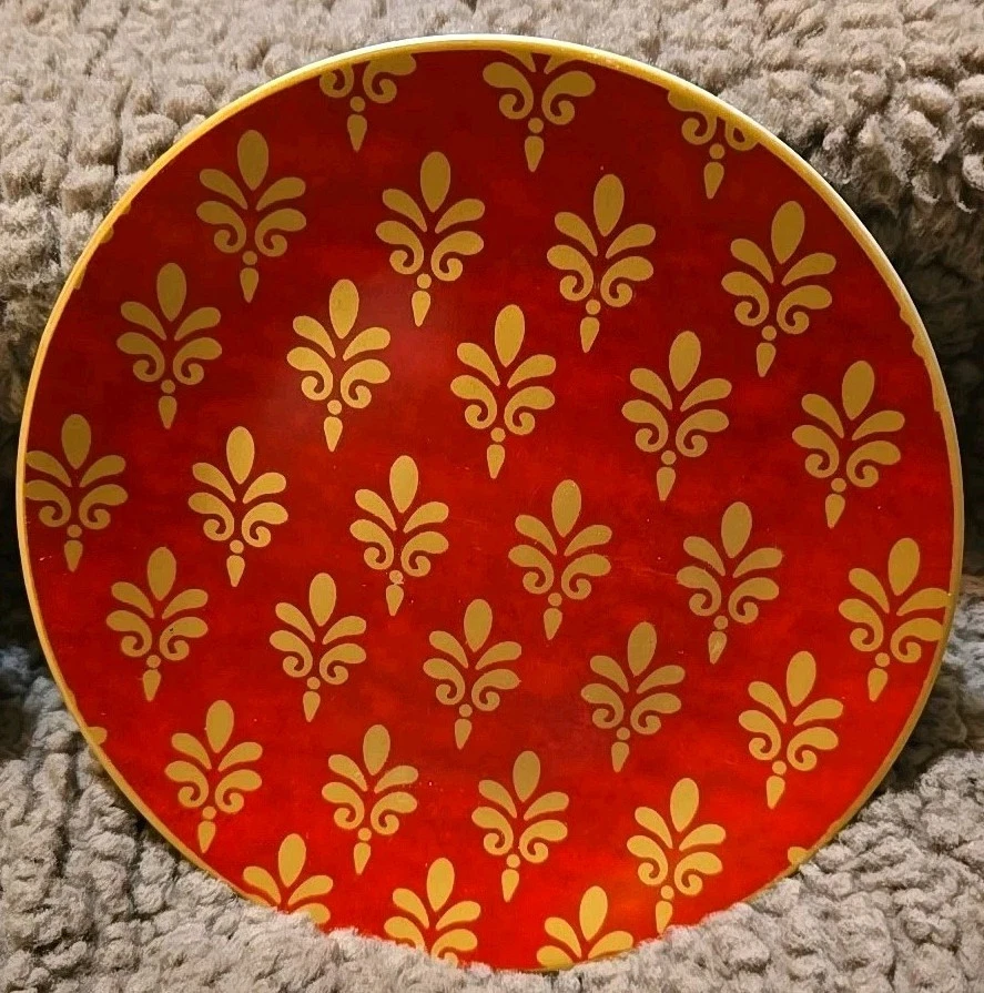 Pier 1 Imports Festive Design Porcelain 6" Appetizer Dessert Plates Set of 4 fleur-de-lis style red, purple, blue, green, vibrant color. New without box.