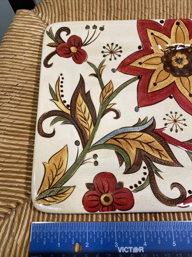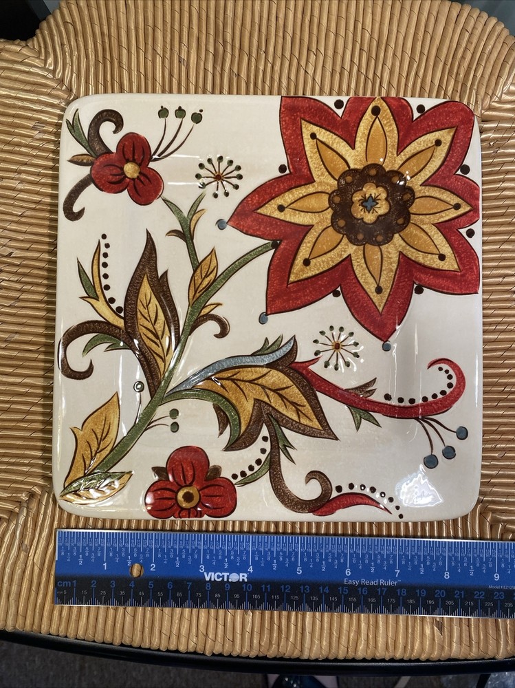 Pier 1 Imports Floral Carynthum Salad Plate Earthenware 8 3/4" Square No chips, cracks, or crazing....