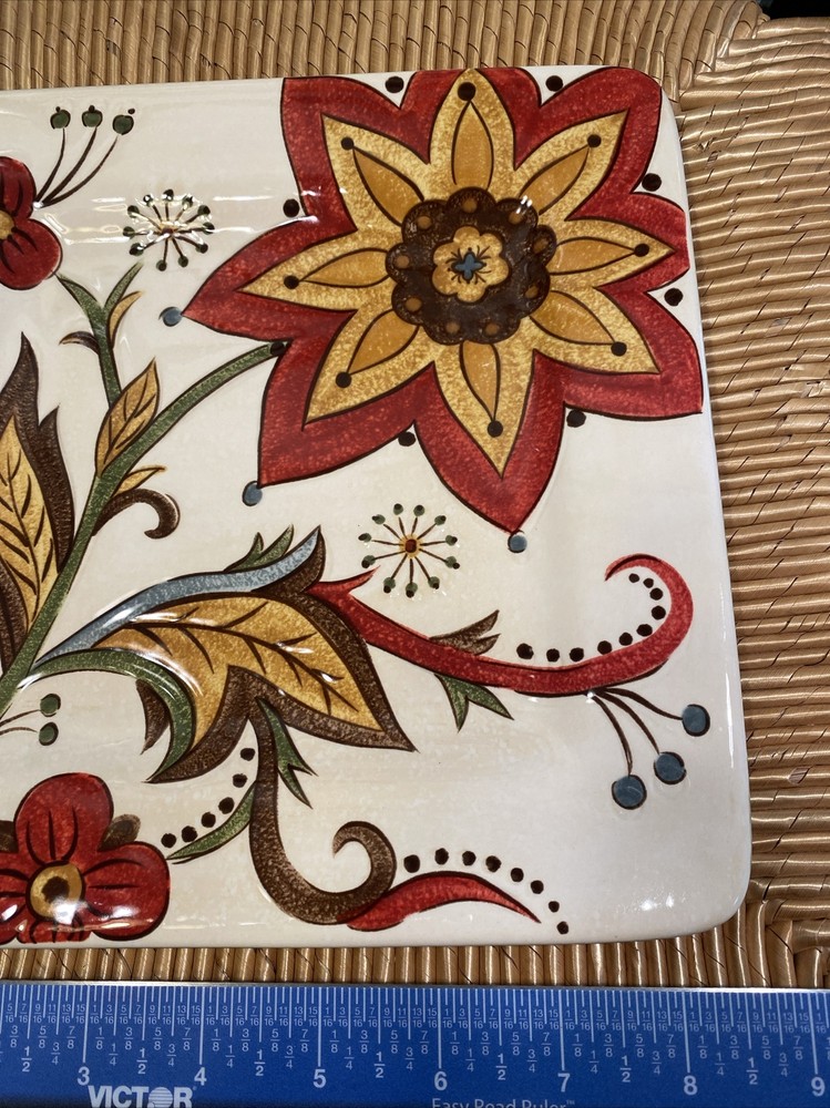 Pier 1 Imports Floral Carynthum Salad Plate Earthenware 8 3/4" Square No chips, cracks, or crazing.