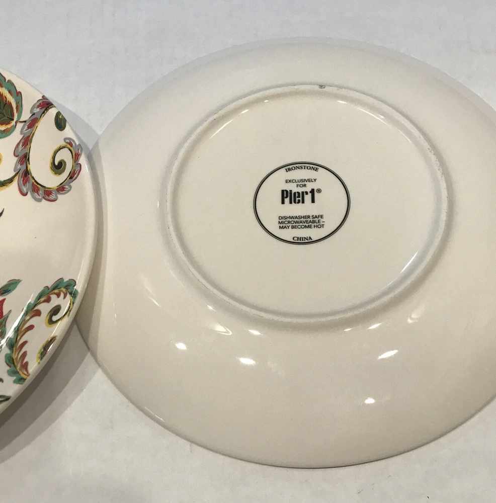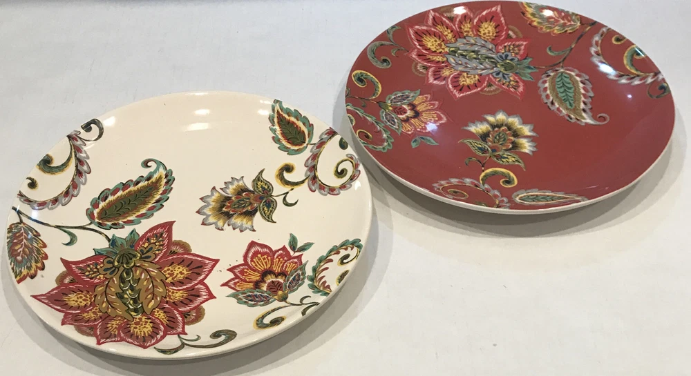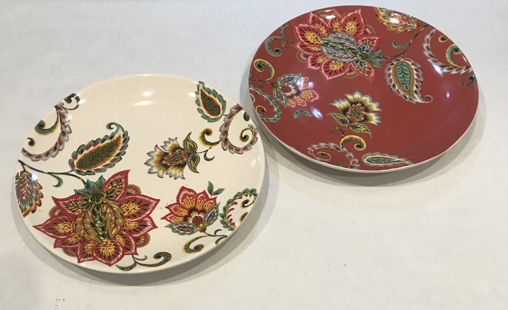 Pier 1 Imports Floral Paisley 9" Salad Plates Set of 2 Multicolor Rare.